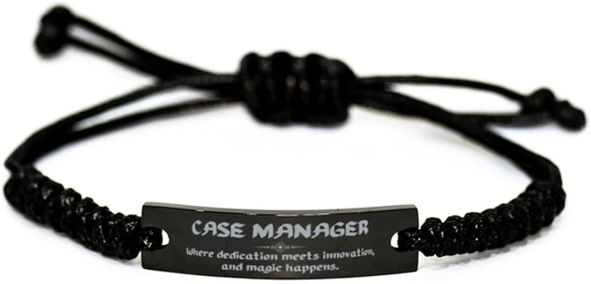 GENERIC Christmas Case Manager Birthday Gifts For Case Manager Black Rope Bracelet Engraved, Case Manager: Where Dedication Meets Innovation, And Magic Happens, Case Manager Appropriate Gifts For Coworkers