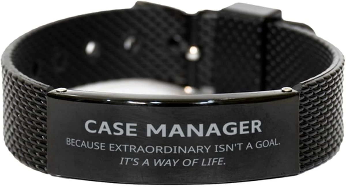 GENERIC Funny Case Manager Gifts, Because Extraordinary Isn’t A Goal, Inspirational Unique Birthday Christmas Black Shark Mesh Bracelet For Case Manager, Coworkers, Men, Women, Friends