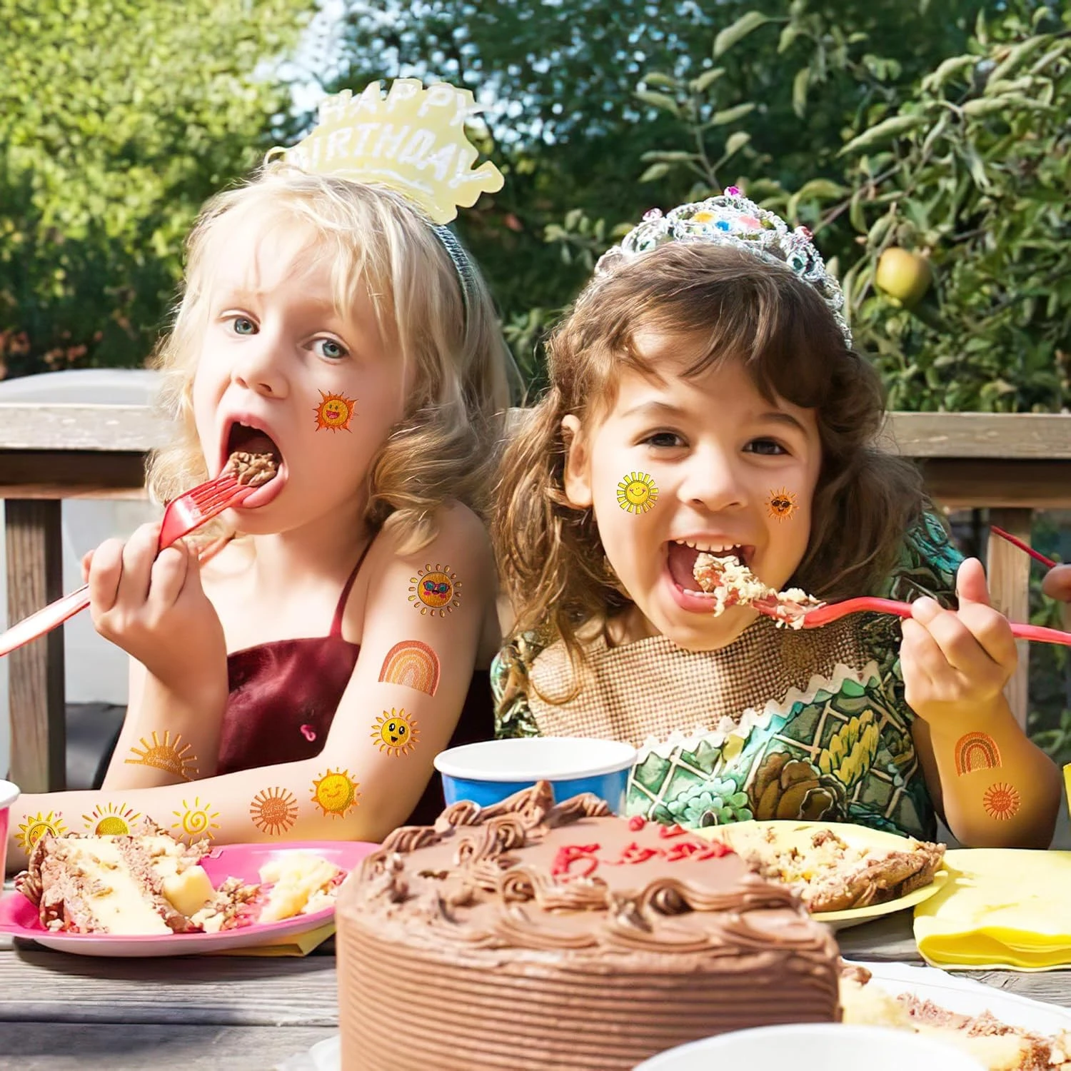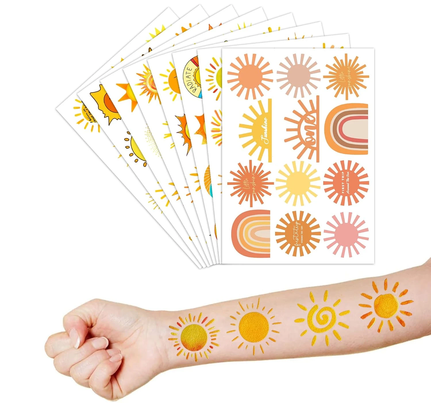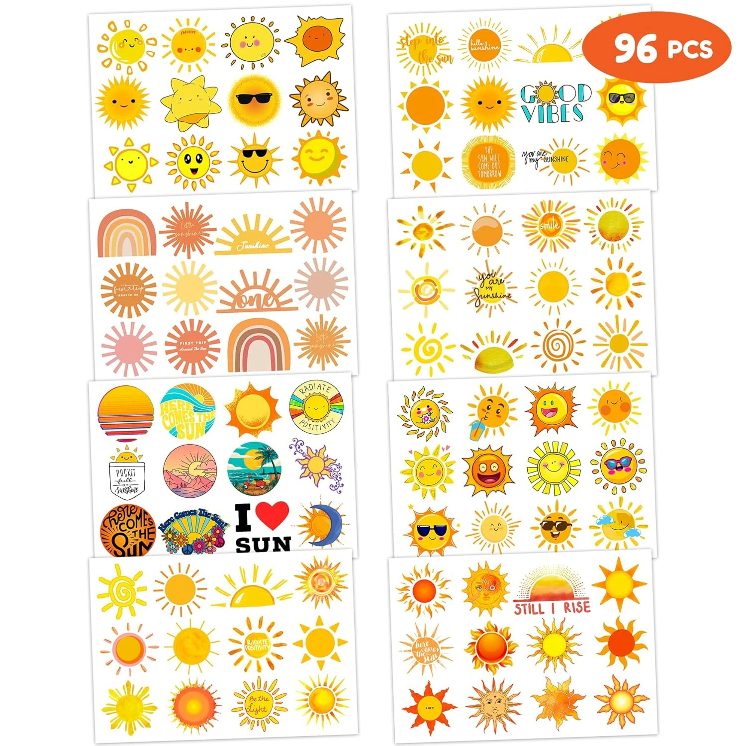 - 🌸 Cute And Funny Sun Themed Tattoos: Cute Sun Temporary tattoos Stickers, features an assortment of themed characters, colors are bright, and designs are adorable, use them as party favors and your kids will love. Perfect for themed party, birthday activities, school reward and other party events. They will be your kids’ favorite small gifts.