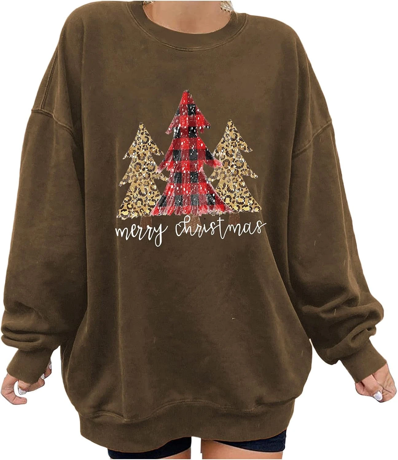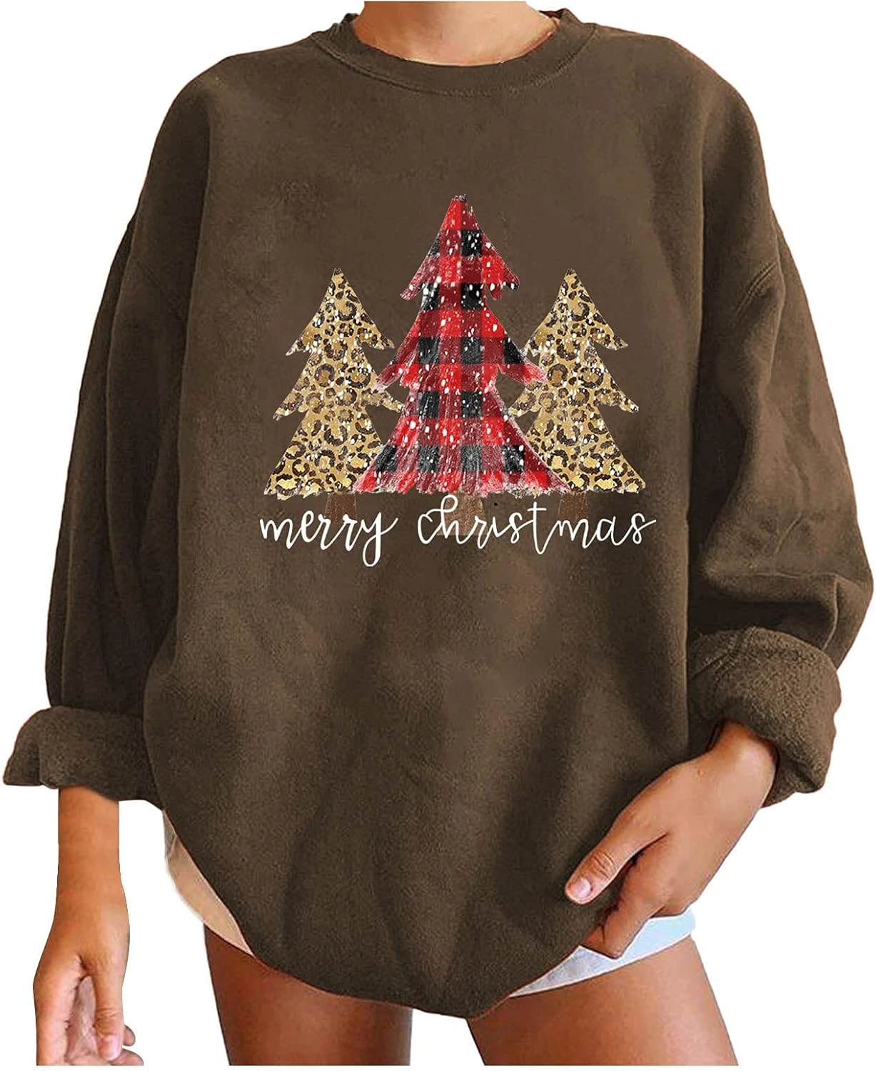 GENERIC Women’s Christmas Print Sweatshirt Slouchy Crewneck Pullovers Casual Long Sleeve Thick Tops Sweatshirts For Teen Girls