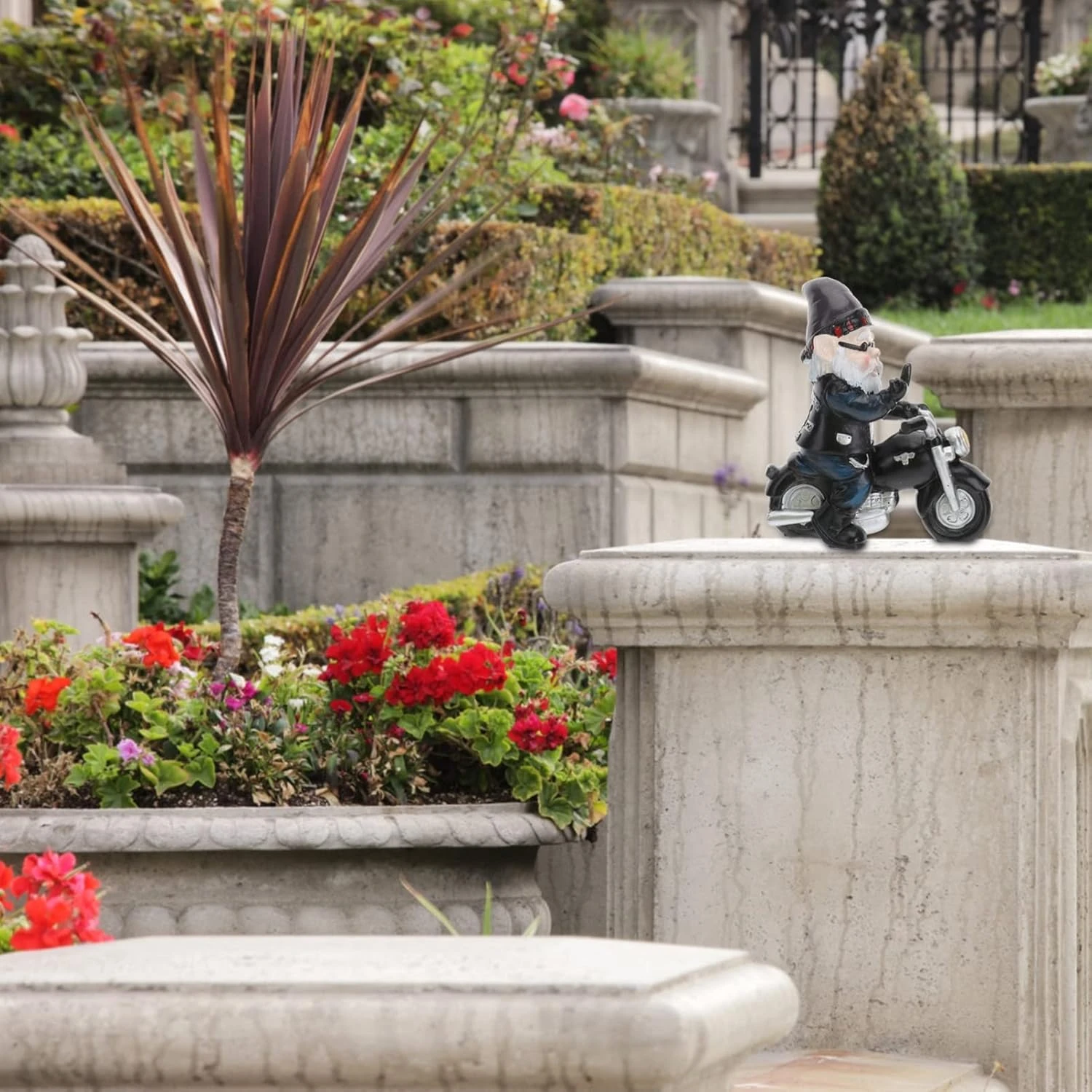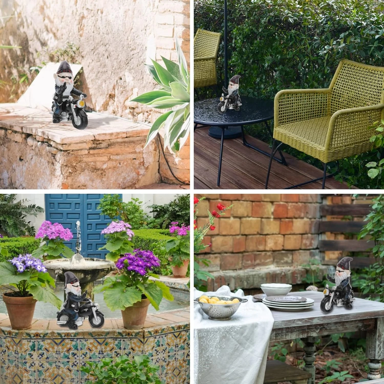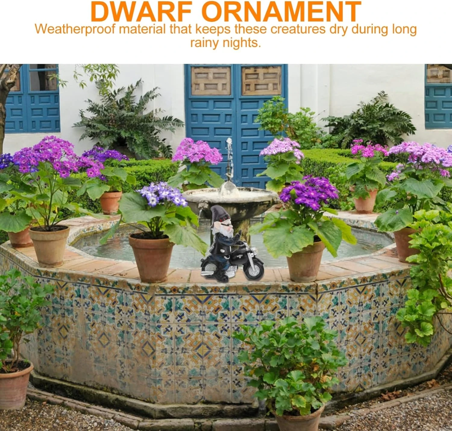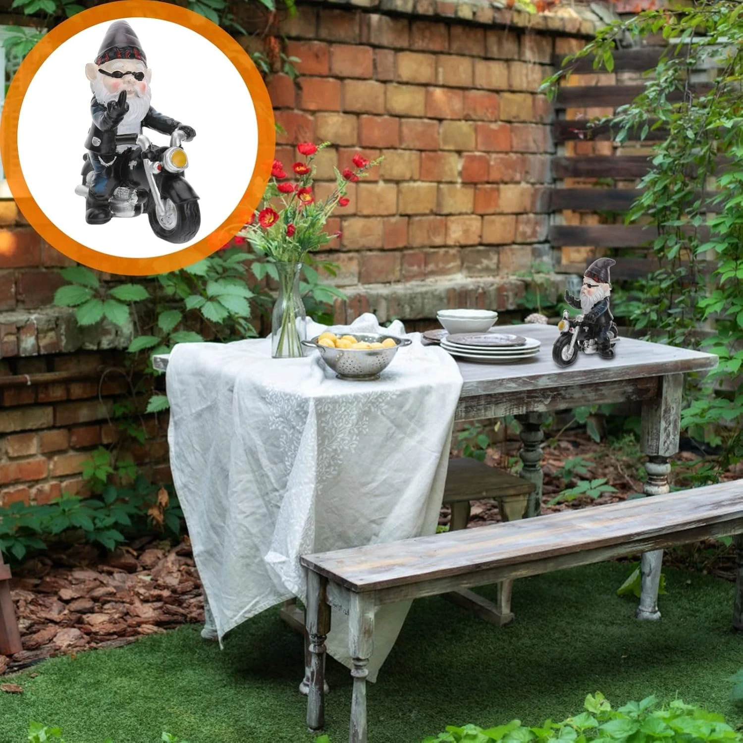 - GARDEN DWARF FIGURINE Garden Gnome Statue Christmas Dwarf Ride Motorbike Figurine Resin Christmas Garden Statue Art Sculpture for Christmas Garden Patio Lawn