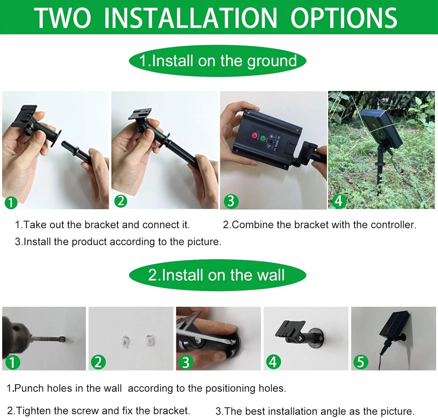 - 【2 Ways to Install & Memory Function】- Unlike other brand solar lights only can install on the ground,our’s with the wall mounted stake and the point spike,can be installed on the wall or directly inserted in lawn.Build in Memory chip save your last modes setting and no need to reset mode every time for your solar string lights.