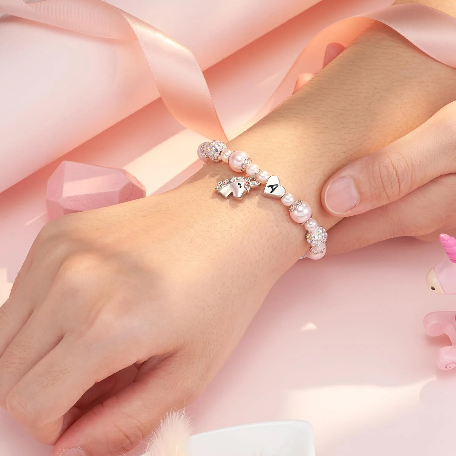 - [ Material & Size ] The unicorn bracelet was made of the highest quality components, including adjustable pink rope, pearls, and an exquisite unicorn pendant. Girth adjustable from 4 – 10 inches, not easy to break, and fits most wrists