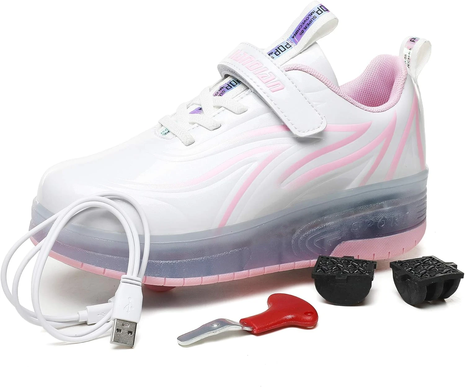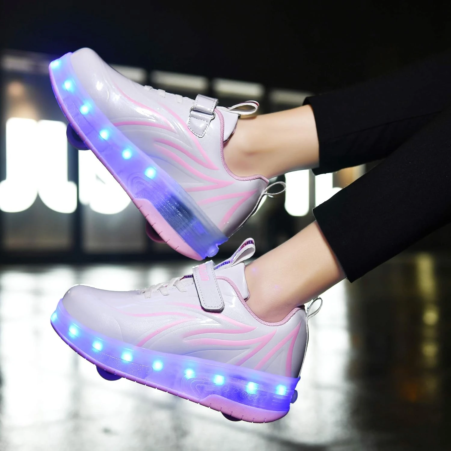 - ✔USB charging and light switch: the charging port is above the inside of the ankle of the shoe, and the light switch is on the side of the charging port. Charging for 2-3 hours can flash for 4 hours.