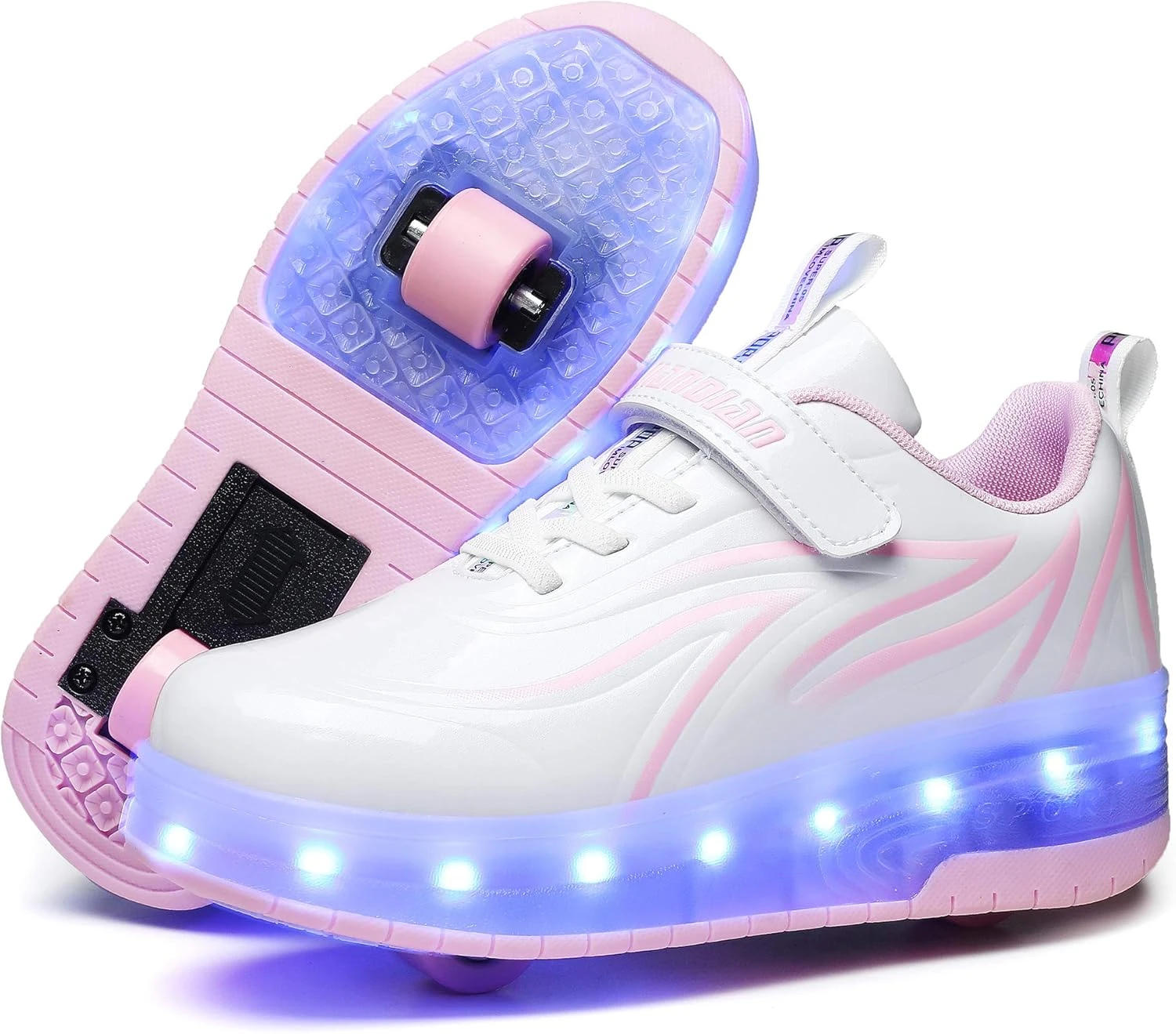 - ✔ Excellent function: easy to use, the wheels can be stowed, you can choose to release the wheels when you need to slide, and immediately retract them when you don’t need them (single-wheel mode). The release and retraction switch is at the heel of the shoe.