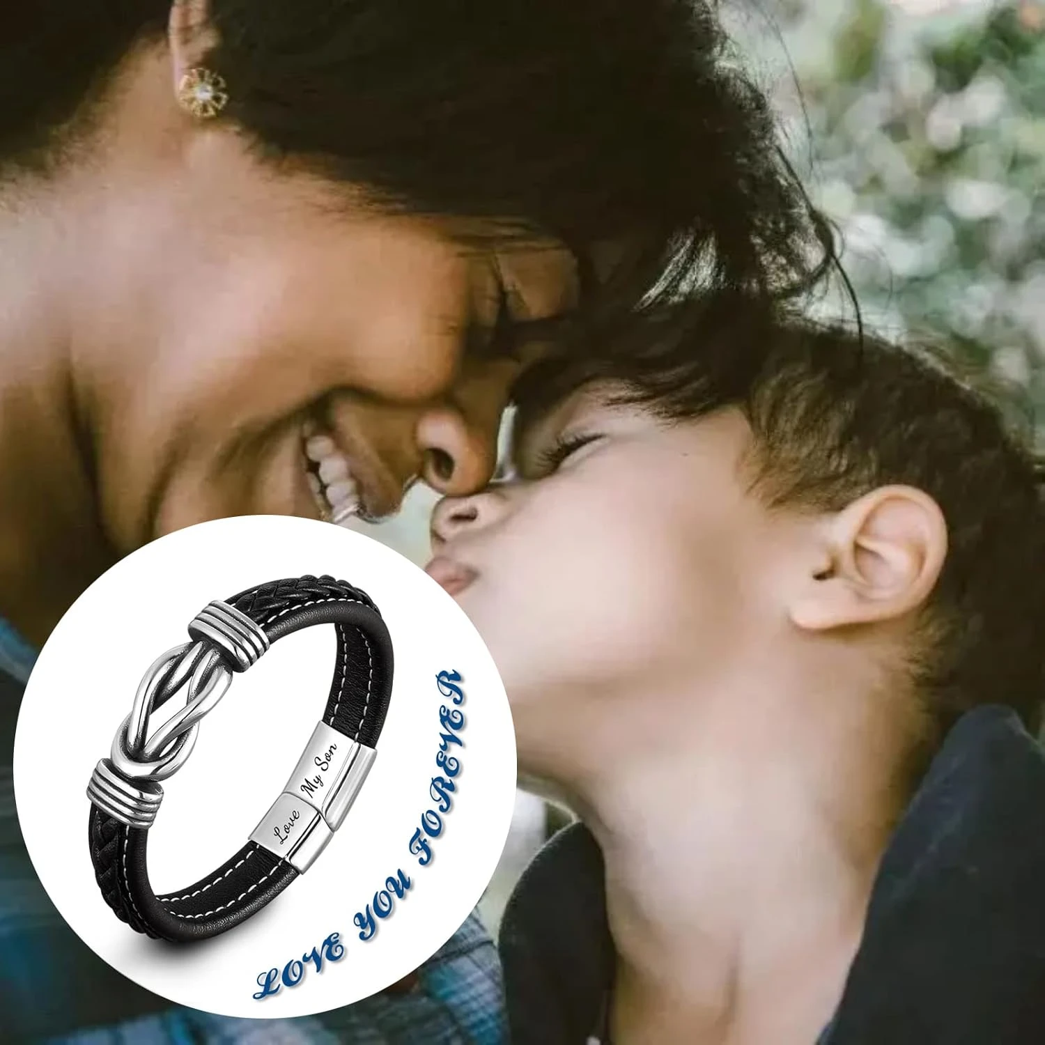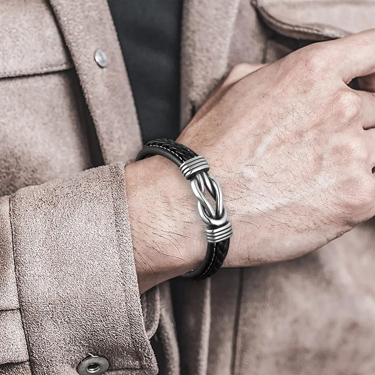 HNLUGF Leather Bracelet For Men Boy, Braided Leather Bracelets With Stainless Steel Magnetic Closure Black Bangle Wristband Christmas Back To School Graduation Birthday Gifts For Son