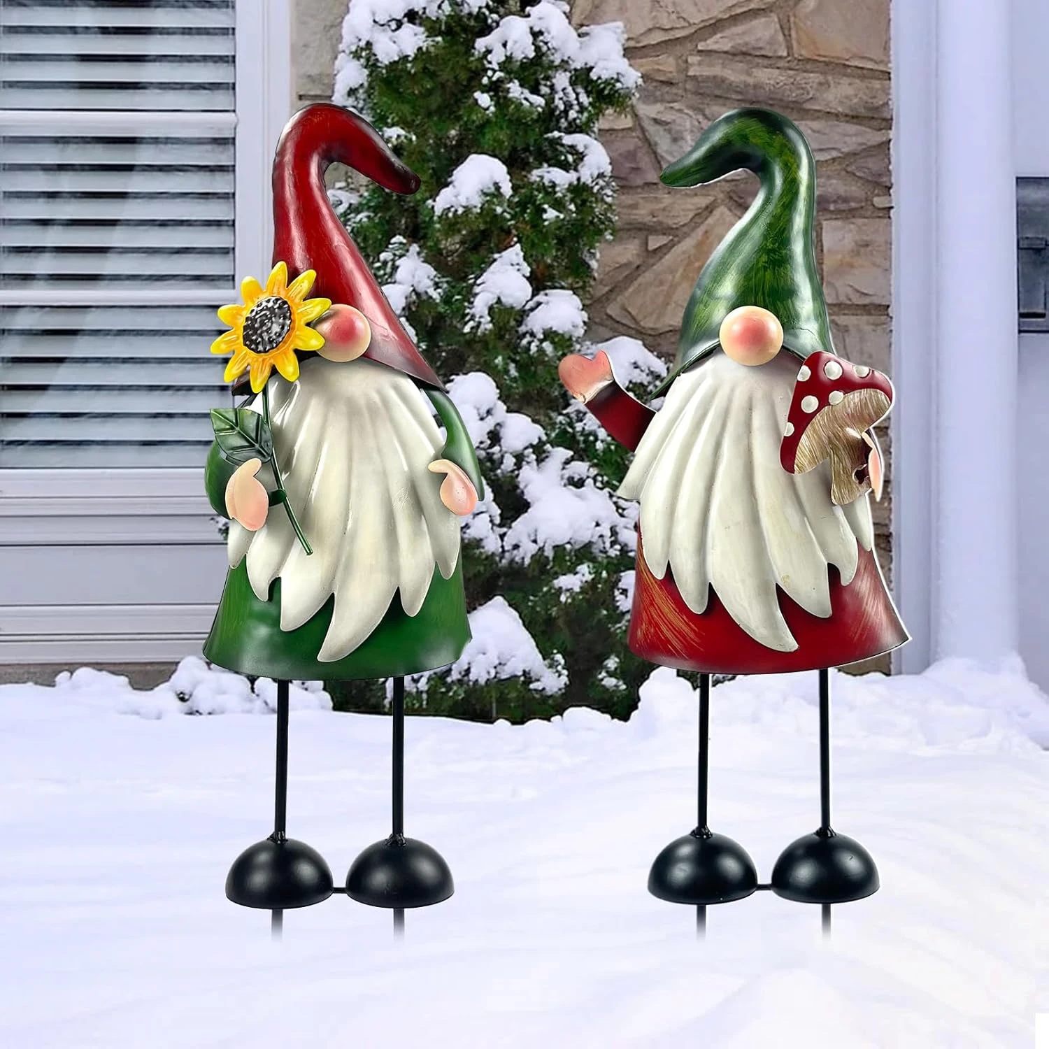 - 【Metal Gnome Sculpture】The metal gnome garden stake decor is made of high-quality iron, rust-proof with eco-friendly paint, suitable for indoors and outdoors.3D design makes it look more realistic and vivid, add the festival atmosphere during Christmas holiday. They can be placed not only on the lawn, but also in the yard or flower bed, bring a different kind of fun to your yard