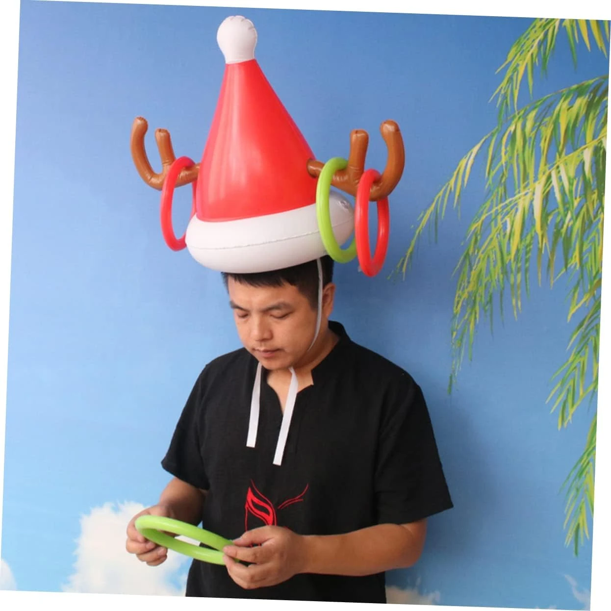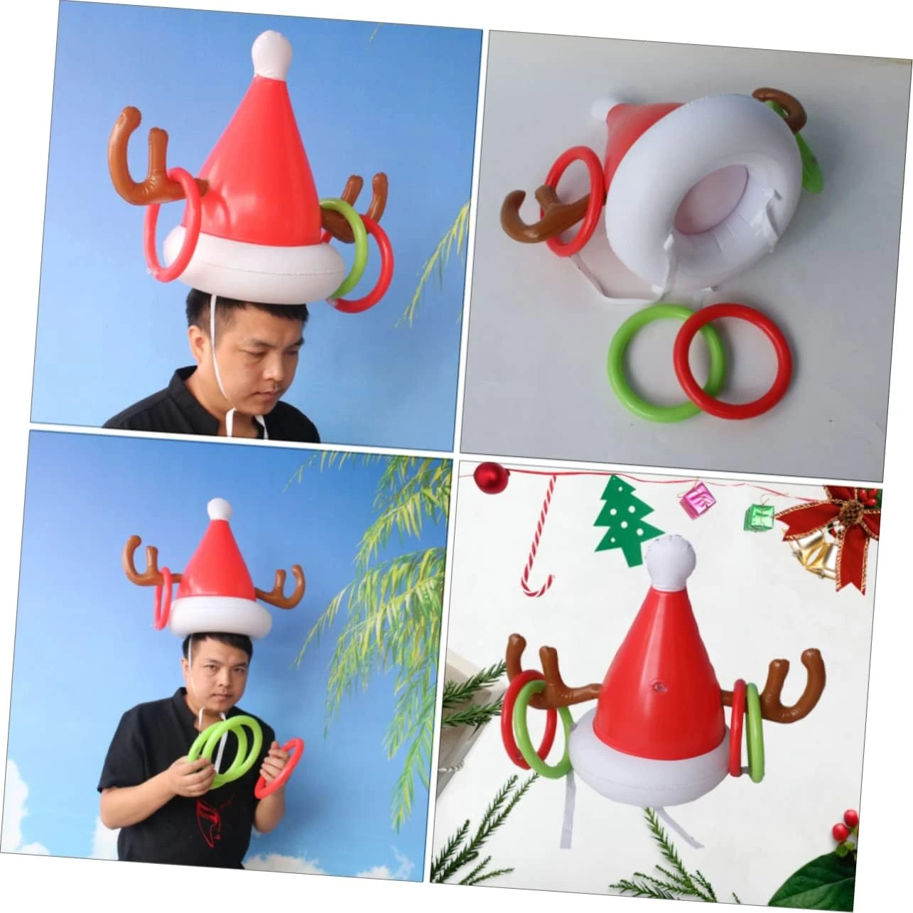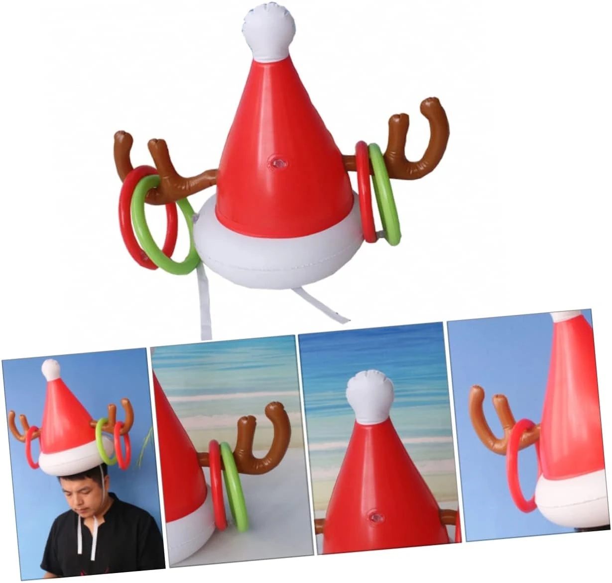 INOOMP 2pcs Inflatable Antler Hat Ferrule Toy Ring Toss Toy Xmas Fun Outdoor Games Plastic Playes Inflatable Toys Outdoor Hats Christmas Decoration Antler Hat Toss Game Inflatable Rings