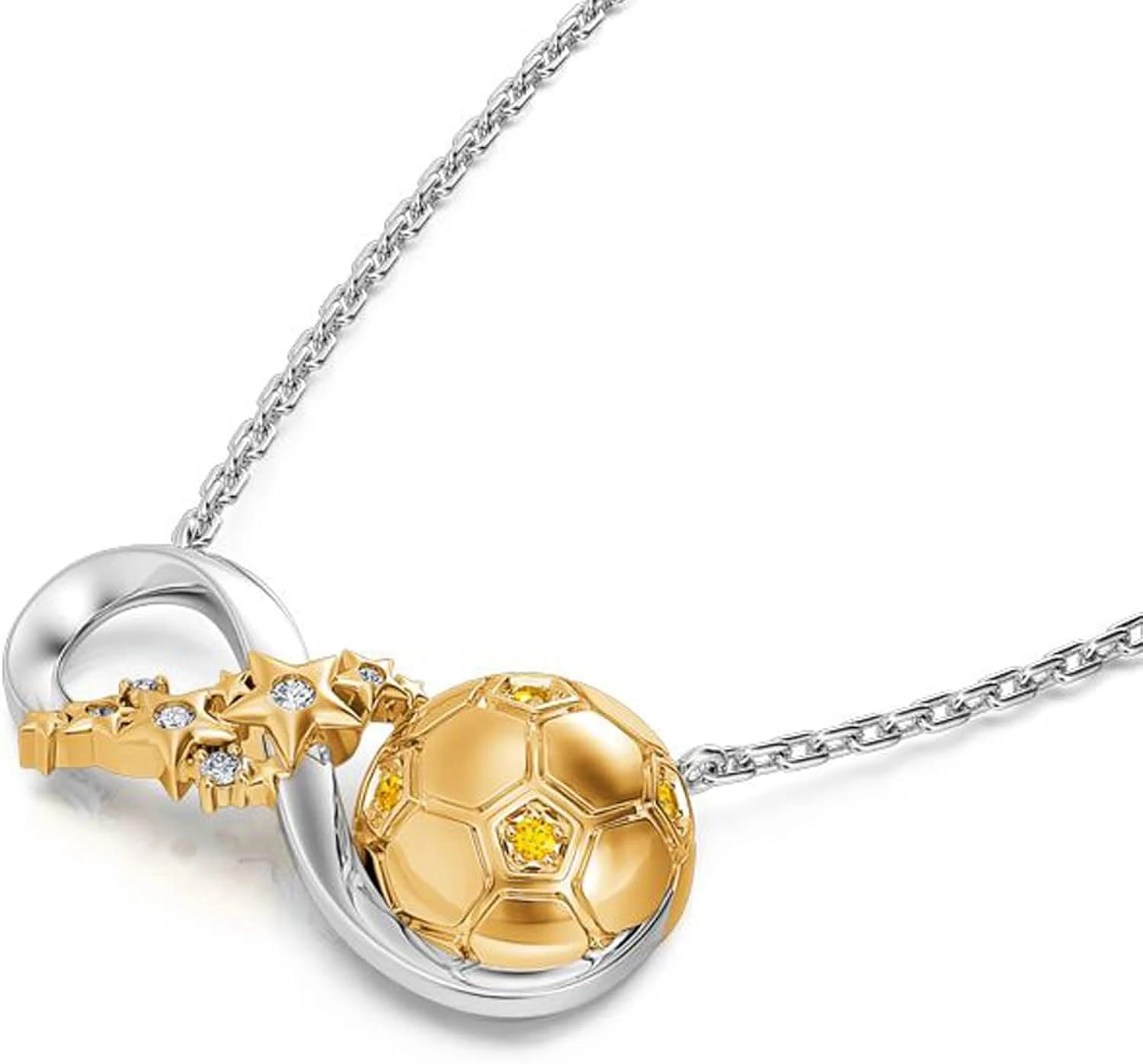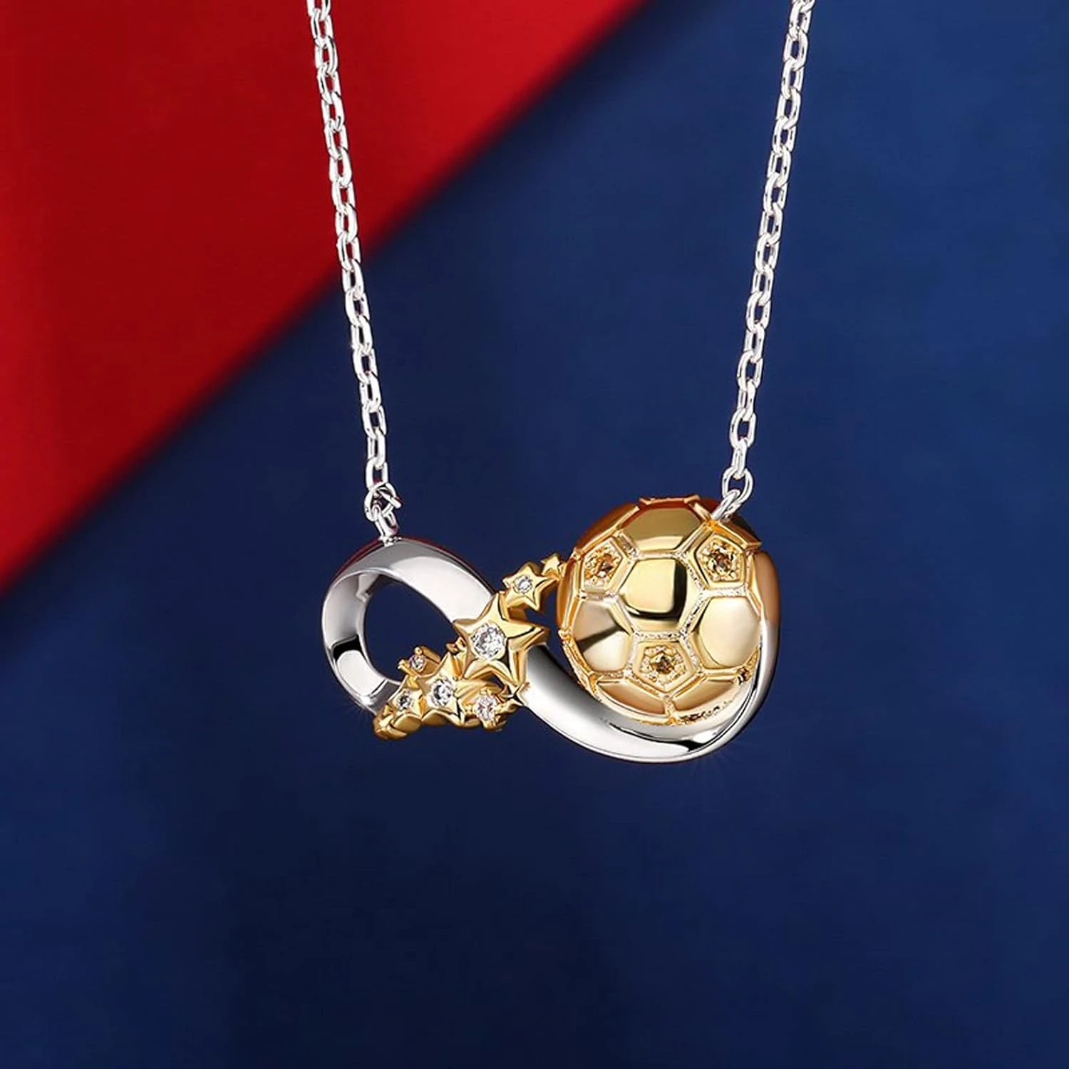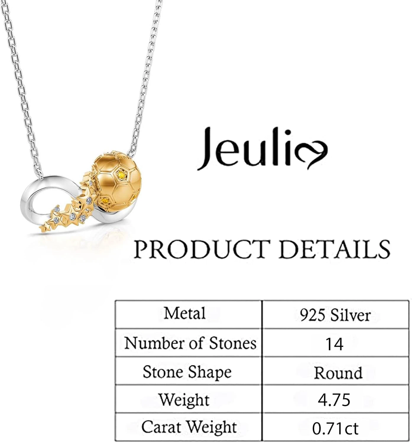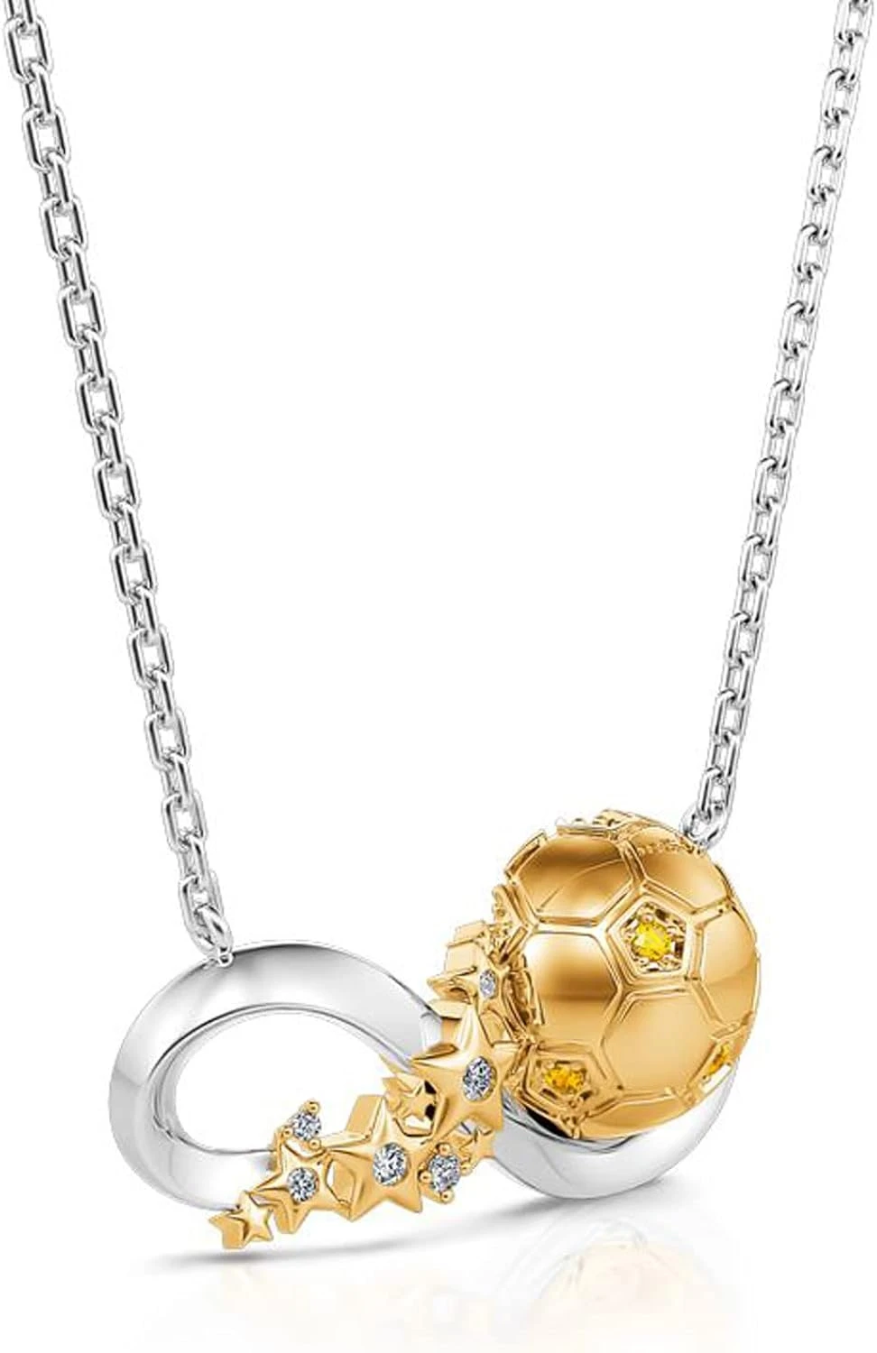 Jeulia World Cup Soccer Ball Necklace: Sterling Silver Plated Crystal Infinity Football Heart Pendant Anniversary Christmas Jewelry Sports Fan Gift Customizable Service With Gift Box