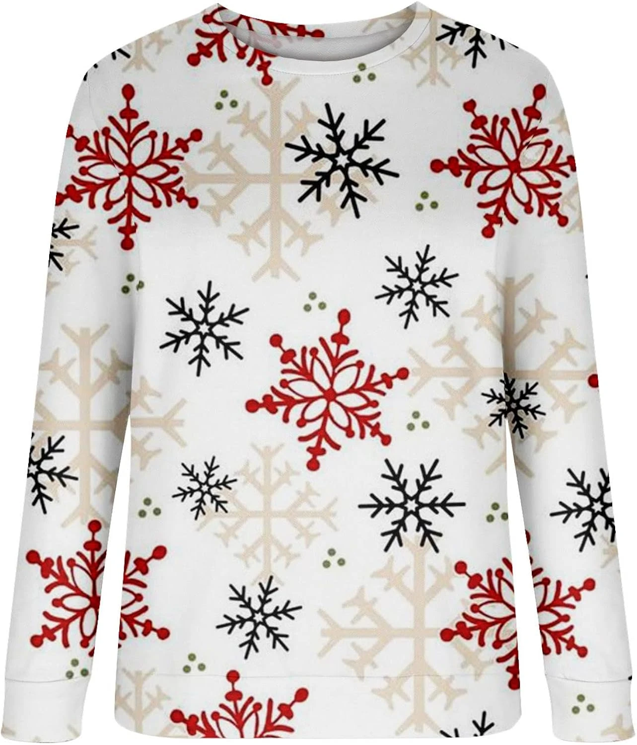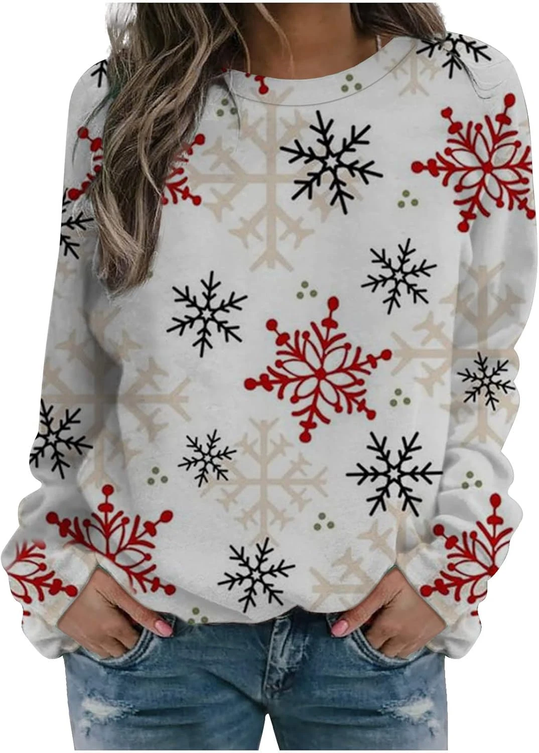 JPVDPA Womens Ugly Sweater Christmas Party Shirts Funny Cute Xmas Snowman Tops Novelty Gnome Printed Crewneck Sweatshirts