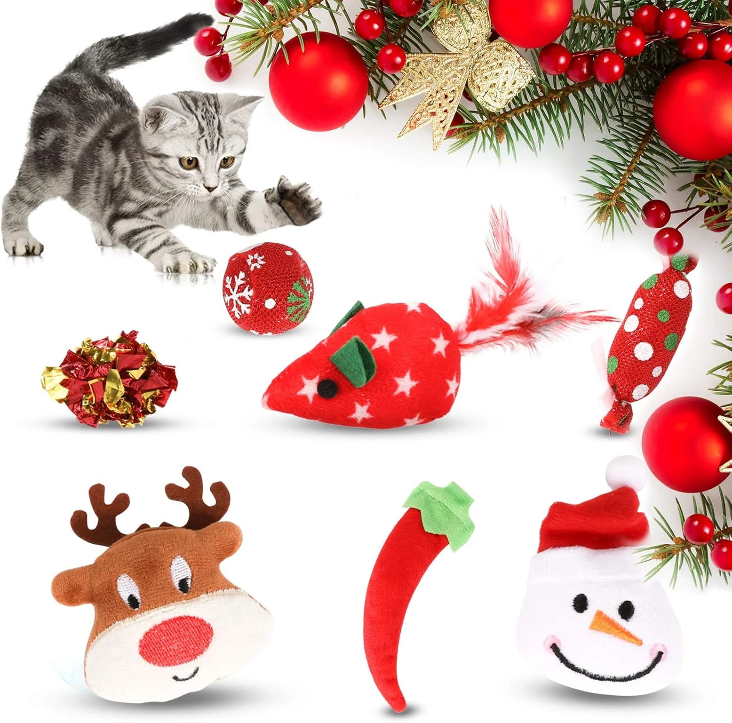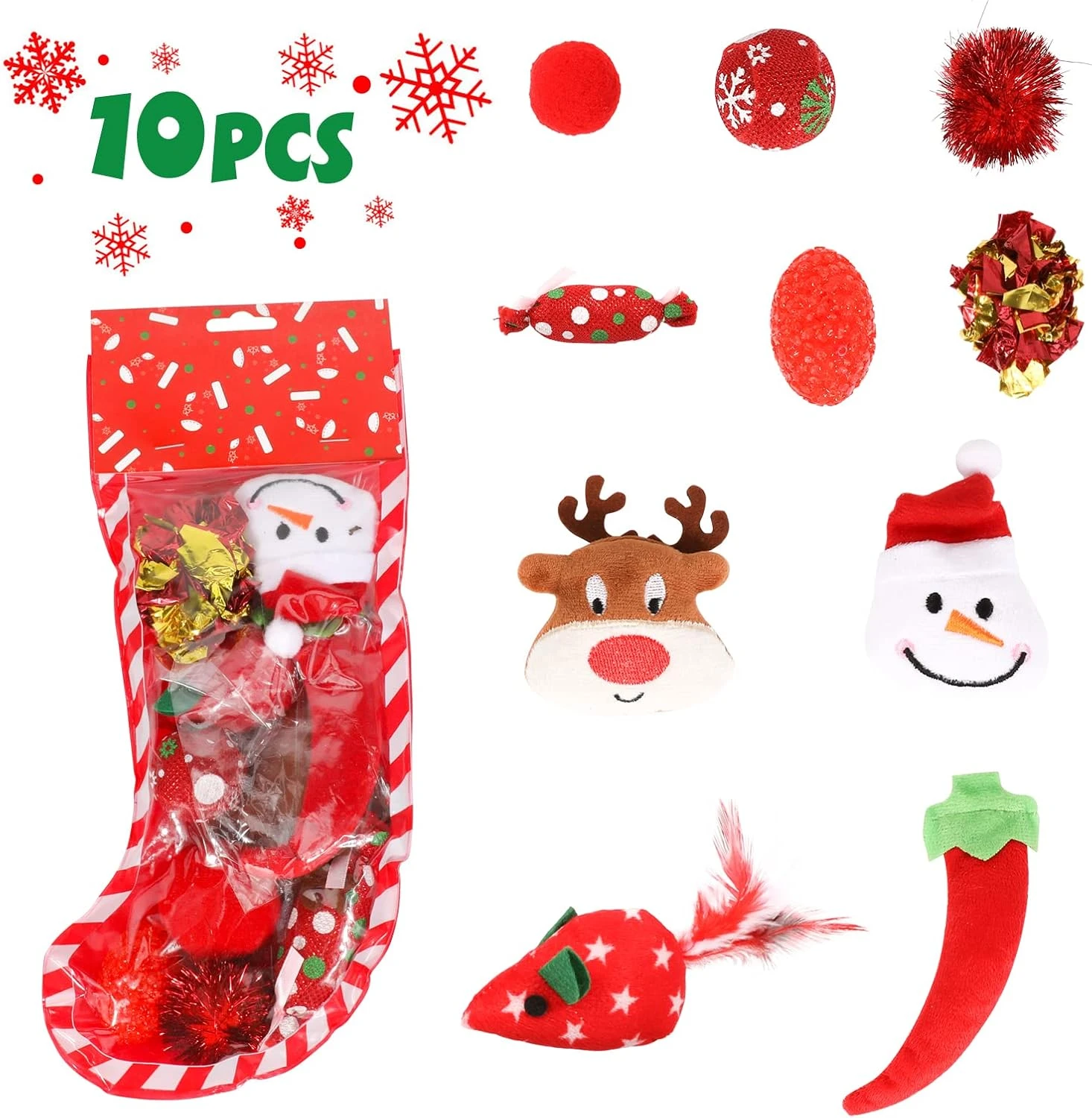 Jupsk 10 Pcs Christmas Cat Toys, Christmas Pet Stocking With Teasing Cat Wand And Toys Balls, Xmas Interactive Chew Toy For Pet Indoor Cats Kitten
