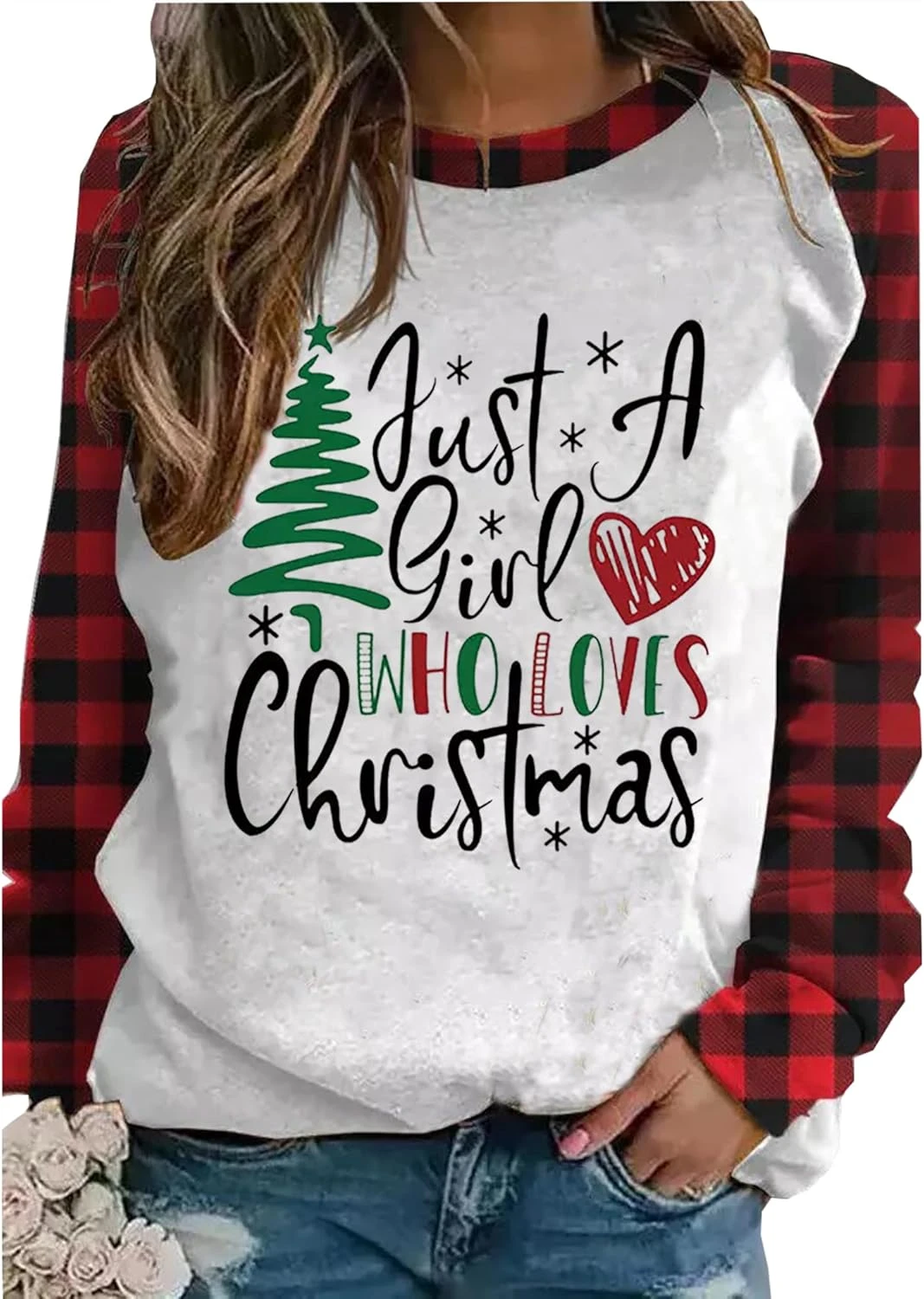Just A Girl Who Loves Christmas Tree Sweatshirt For Women Raglan Sleeve Pullover Tops Color Block Shirt