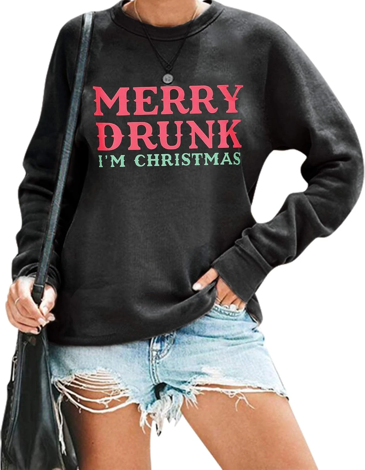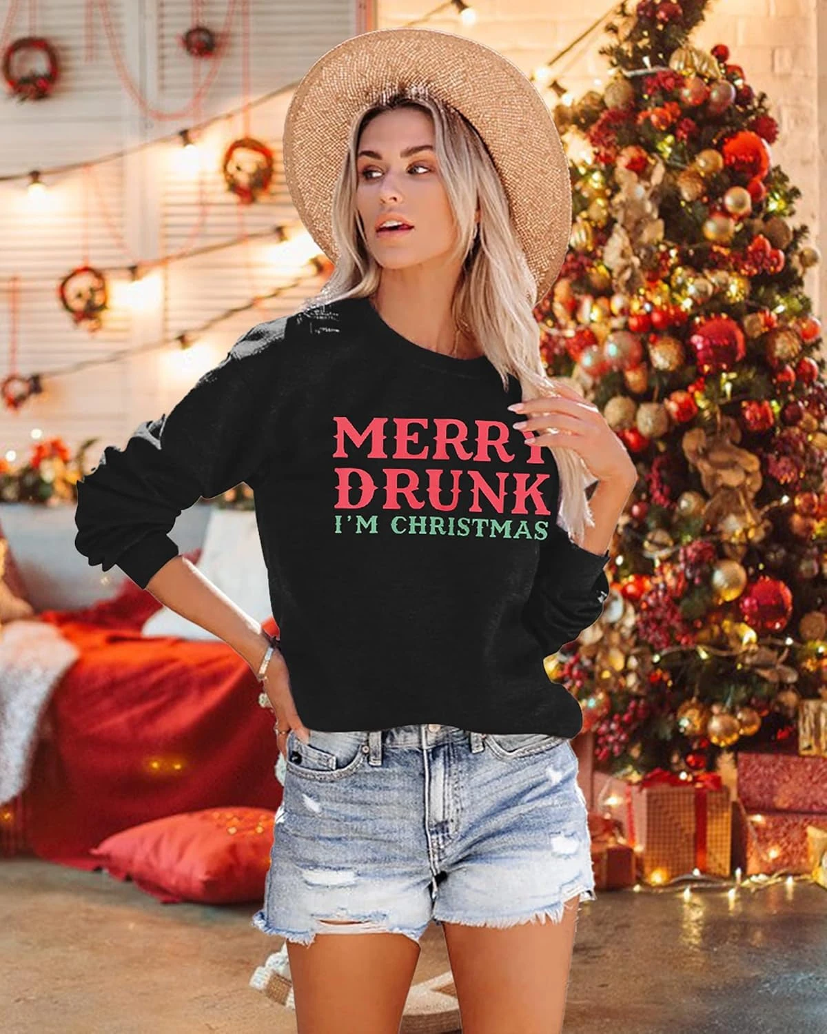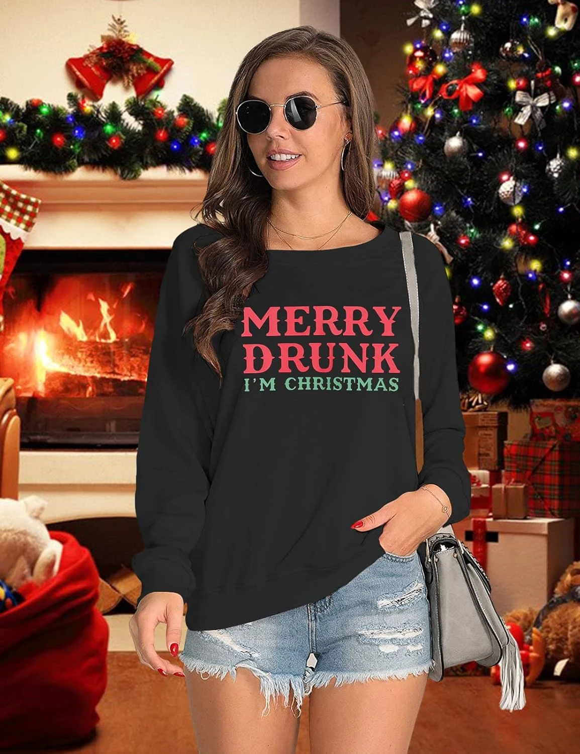 KIDDAD Merry Christmas Sweatshirt Women I’m Christmas Shirt Funny Letter Print Sweater Casual Fall Long Sleeve Tops