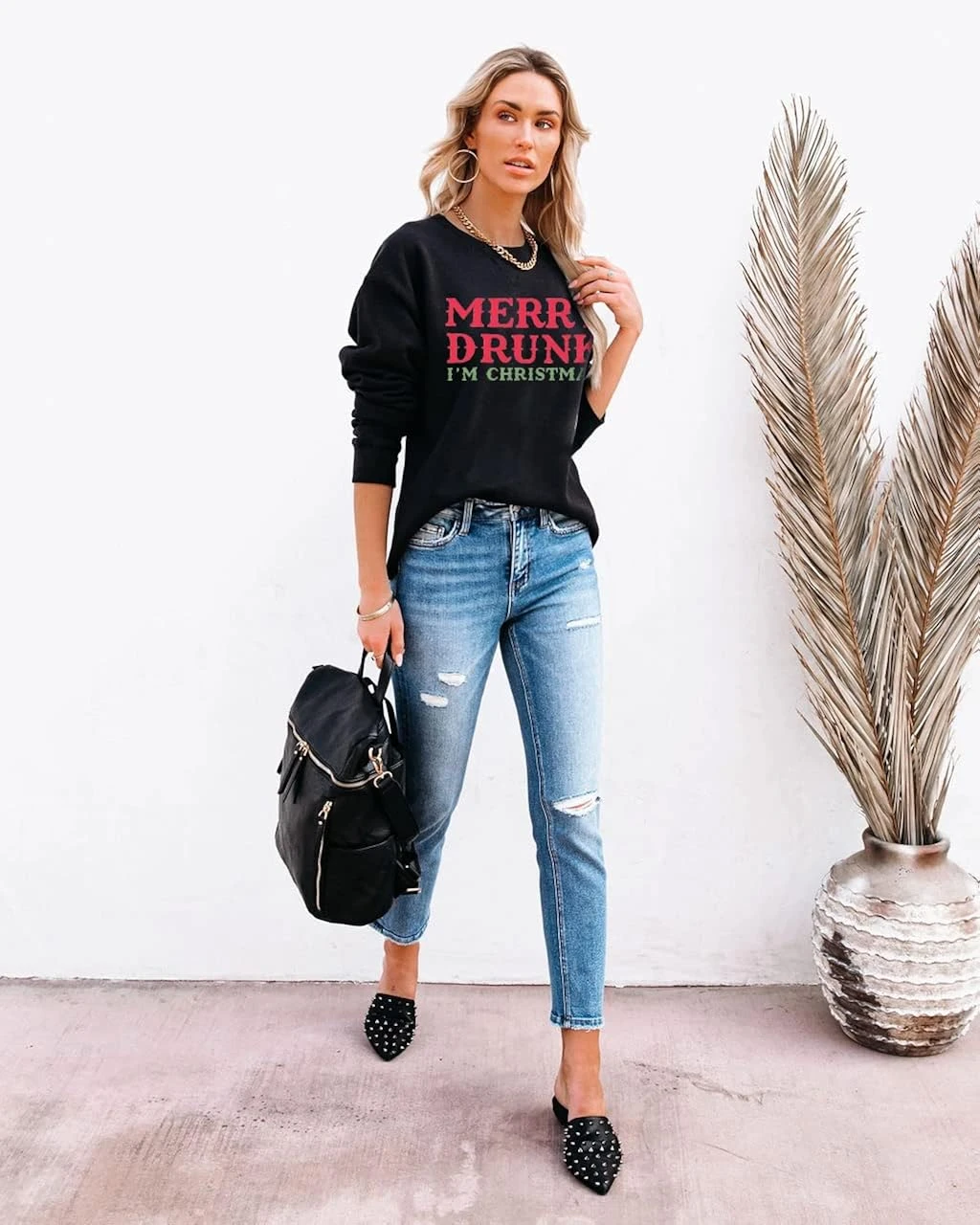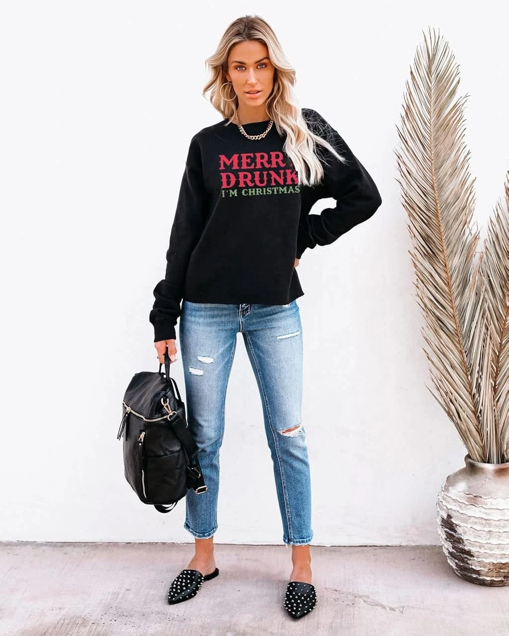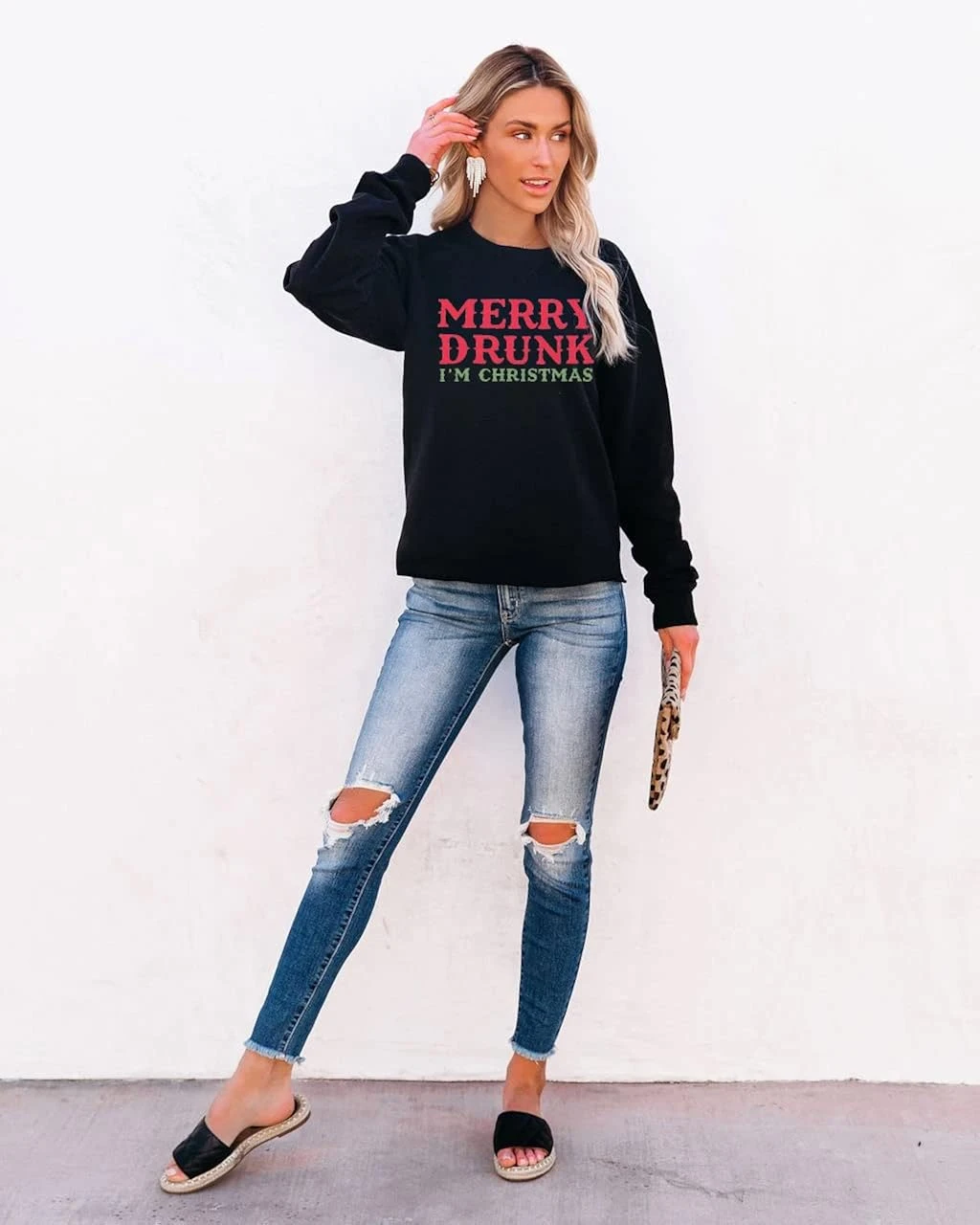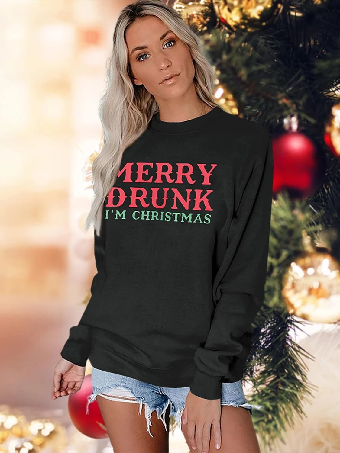 KIDDAD Merry Christmas Sweatshirt Women I’m Christmas Shirt Funny Letter Print Sweater Casual Fall Long Sleeve Tops