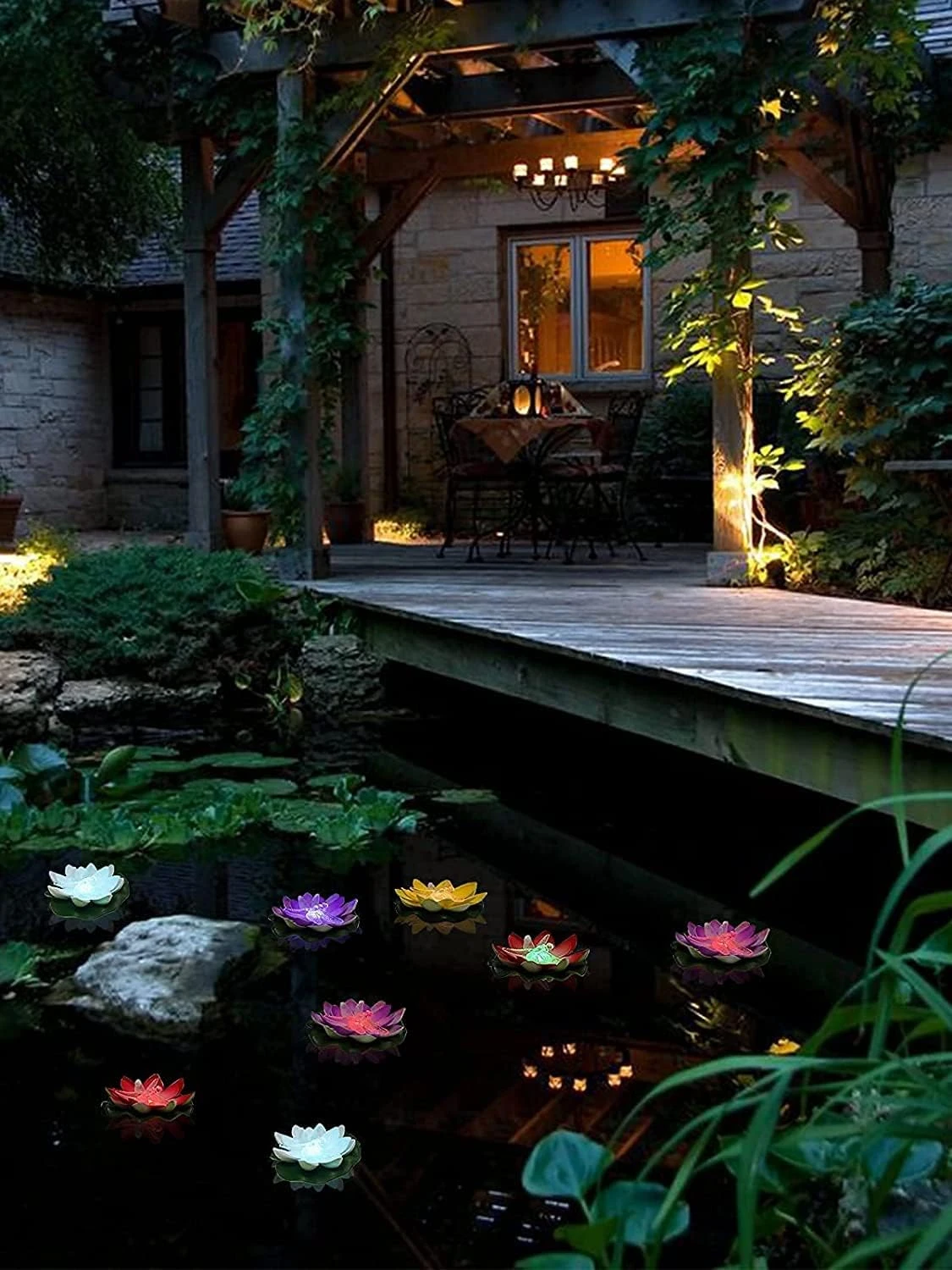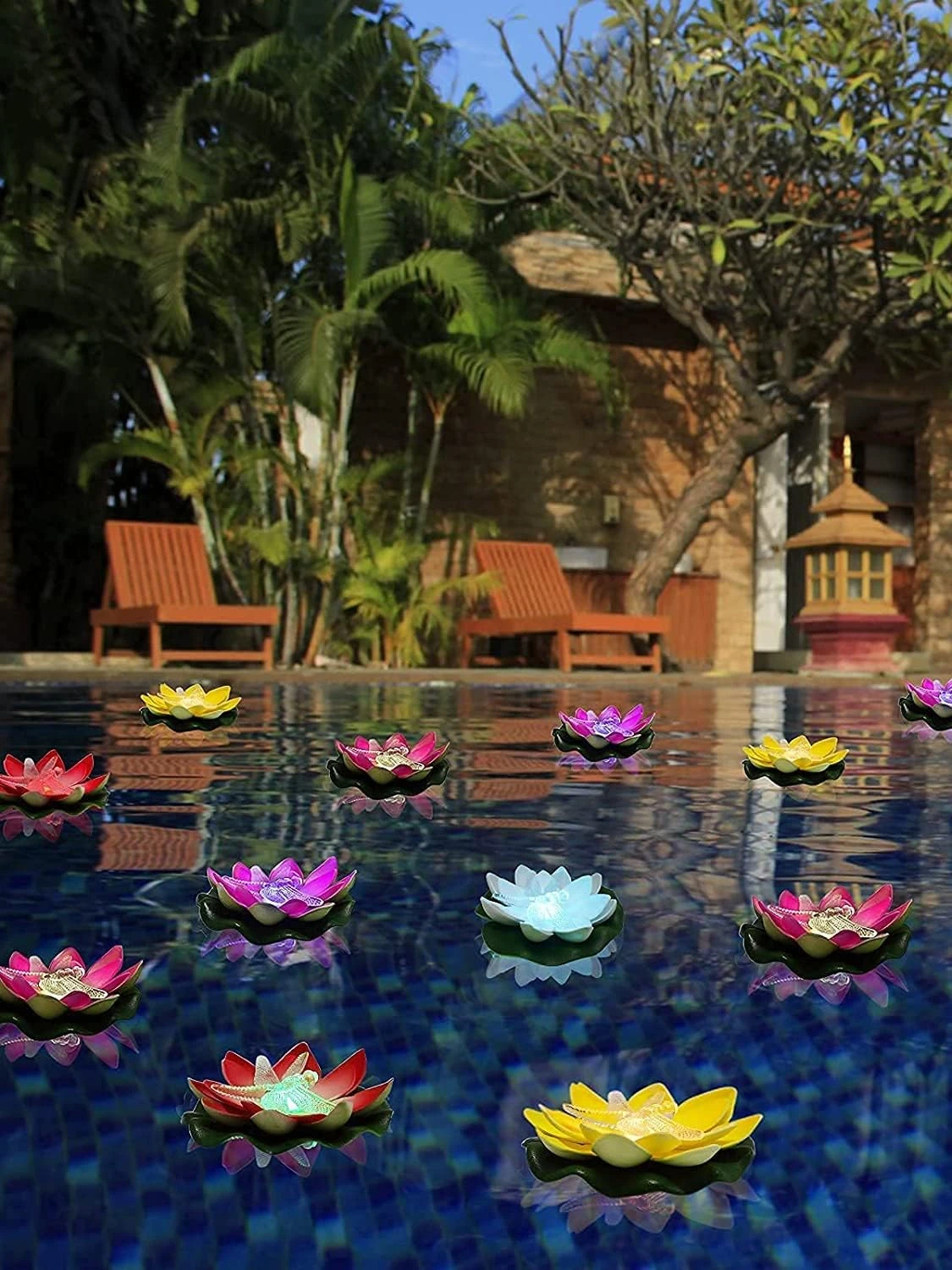 - Colorful Lotus & Dragonfly Shape: We have a new design patent.The floating lights combines the shape of lotus and dragonfly, lovely and realistic. The leaves of each lotus lights have different colors, colored lights add a warm and romantic ambience.