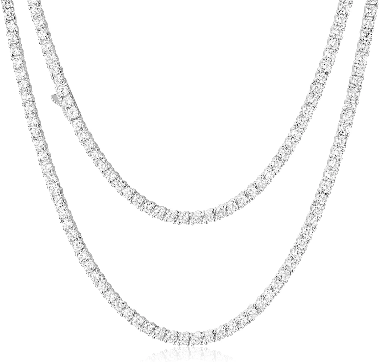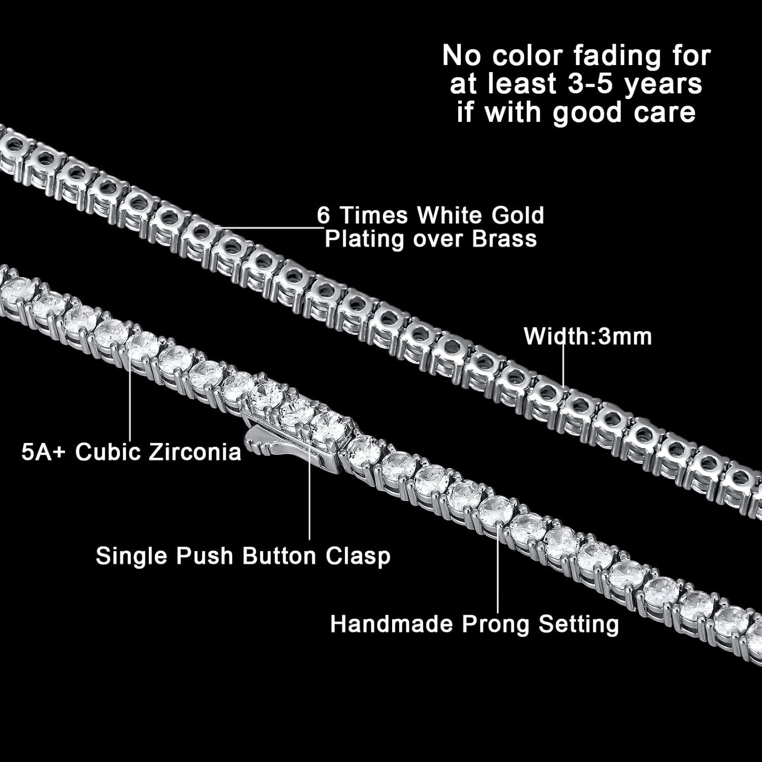 Luxfine 3mm Tennis Necklace For Women & Men, 14K White Gold Plated Cuban Link Chain 5A+ Cubic Zirconia Iced Out Choker Diamond Hip Hop Jewelry, Birthday Wedding Christmas Mother’s Day Gift (with Box & Pouch)