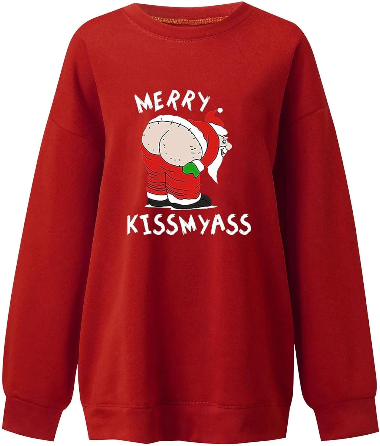 MCILLO Merry Kiss My Ass Sweatshirt For Women Casual Long Sleeve Crew Neck Pullover Graphic Christmas Tops