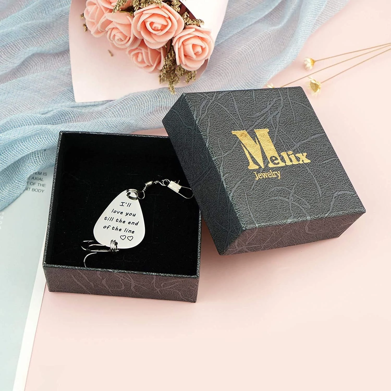 Melix Home Gift For Boyfriend Husband I’ll Love You Till The End Of The Line Fishing Lures Christmas Valentines’s Day Hook, Line And Sinker Fisherman Gift For Husband