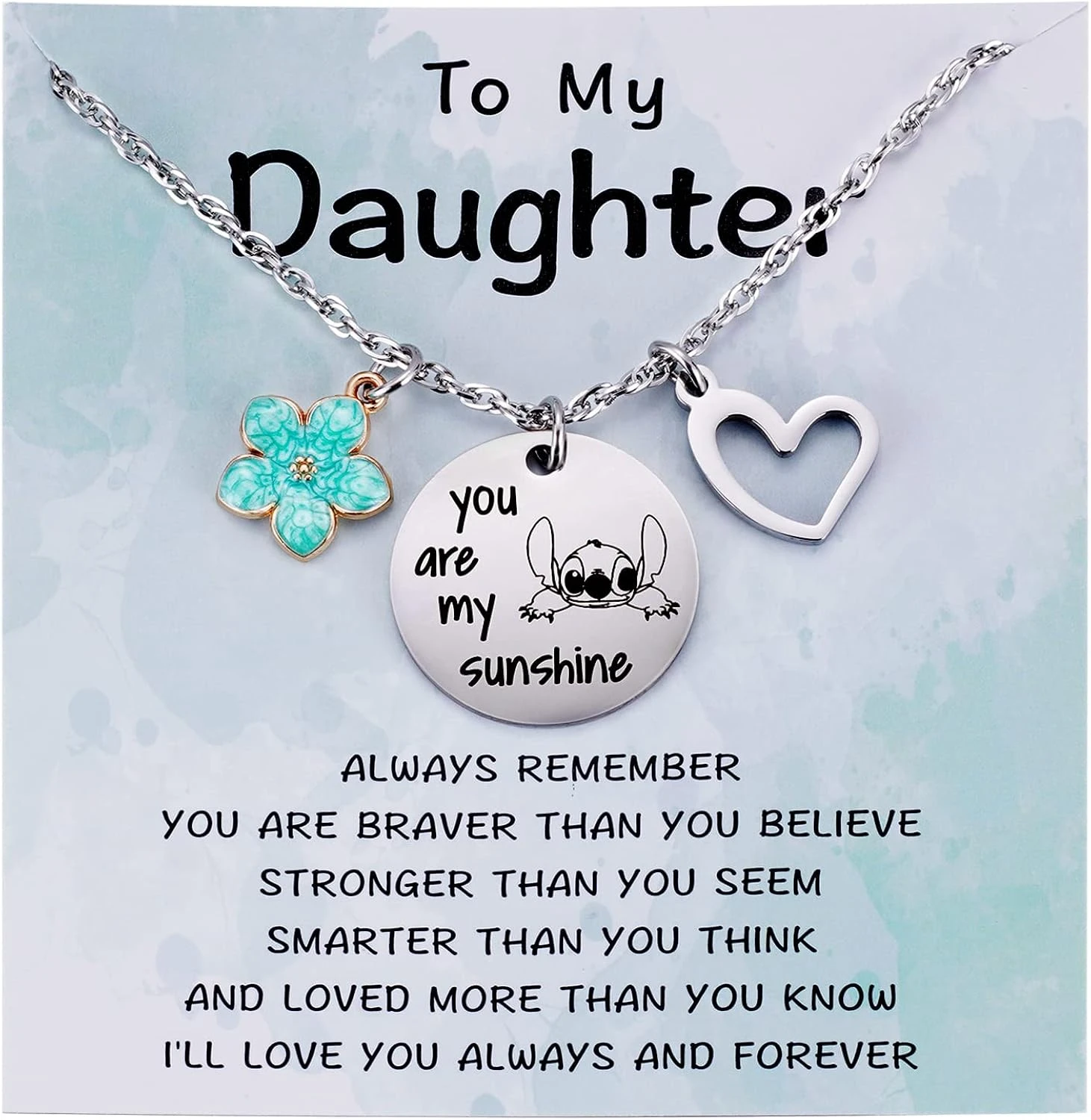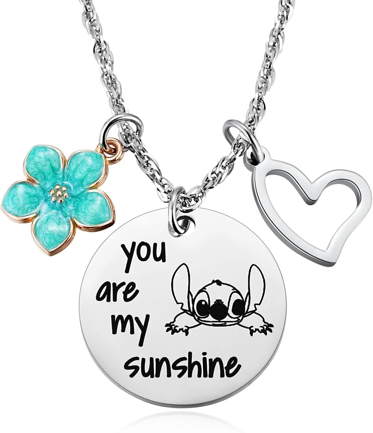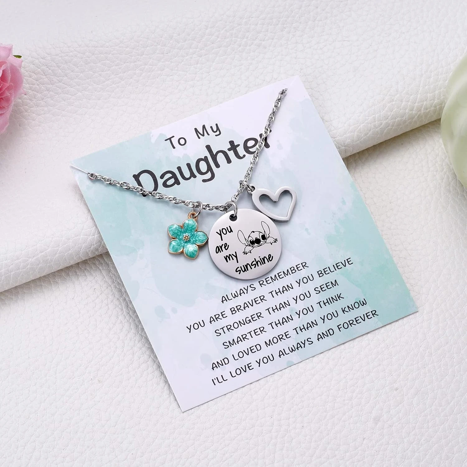 MIXJOY Stitch Gift You Are My Sunshine Necklace&Greeting Card, Stitch Jewelry Stuff Birthday Christmas Present For Little Girls Niece Daughter Granddaughter