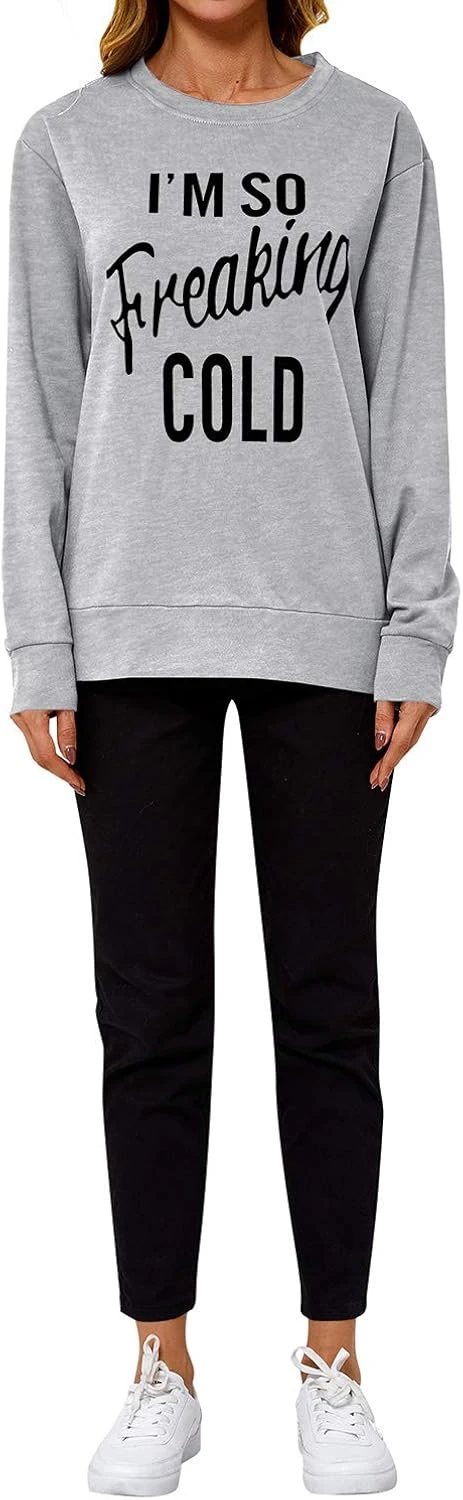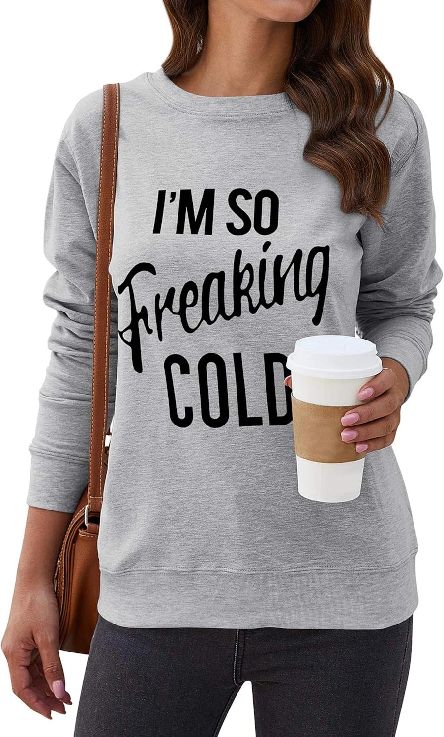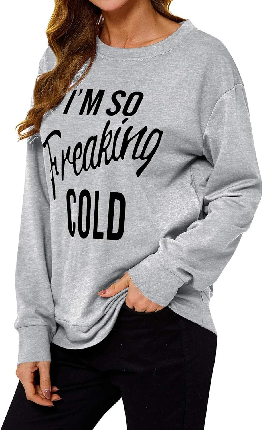 Nlife Women I Am Cold Letter Long Sleeve Funny Graphic Oversized Sweatshirts Casual Christmas Sweatshirt Tops