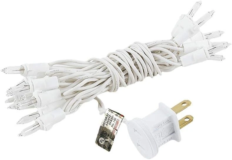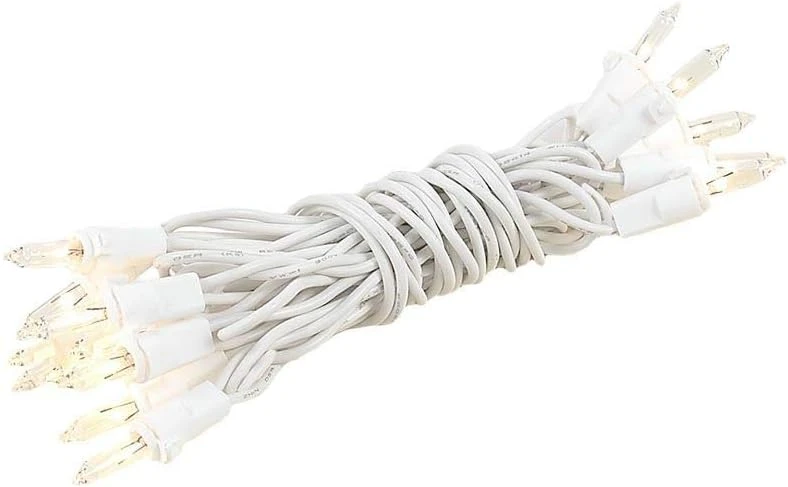 - Novelty Lights presents this commercial grade 22 gauge Green wire Clear Christmas craft mini light set that has 20 lights spaced 4″ apart and is 8 feet long. This craft mini light set is non-connectable end to end meaning that each string is made with only a male plug. Each set comes with 2 replacement bulbs, 1 flasher bulb, and extra 2 fuses.