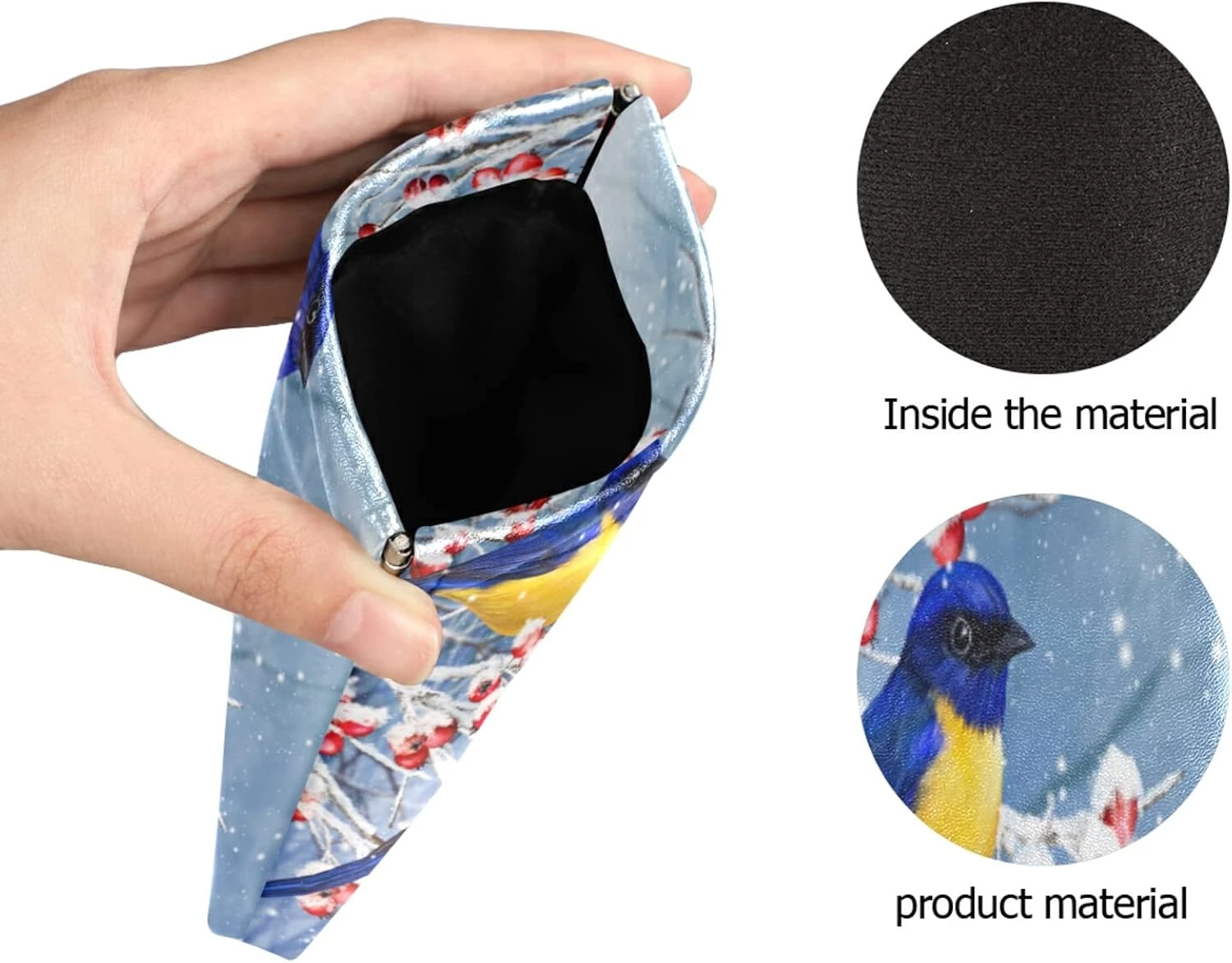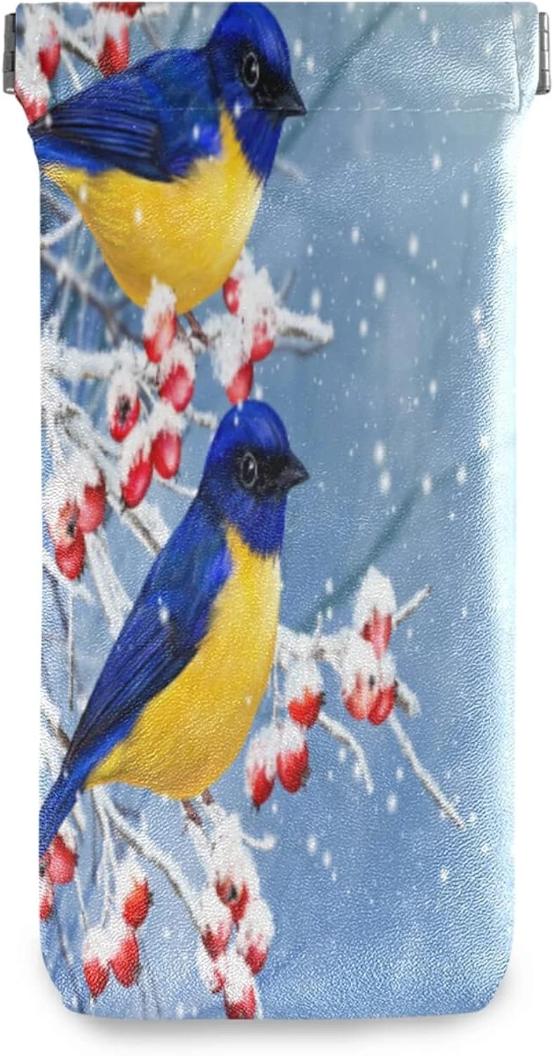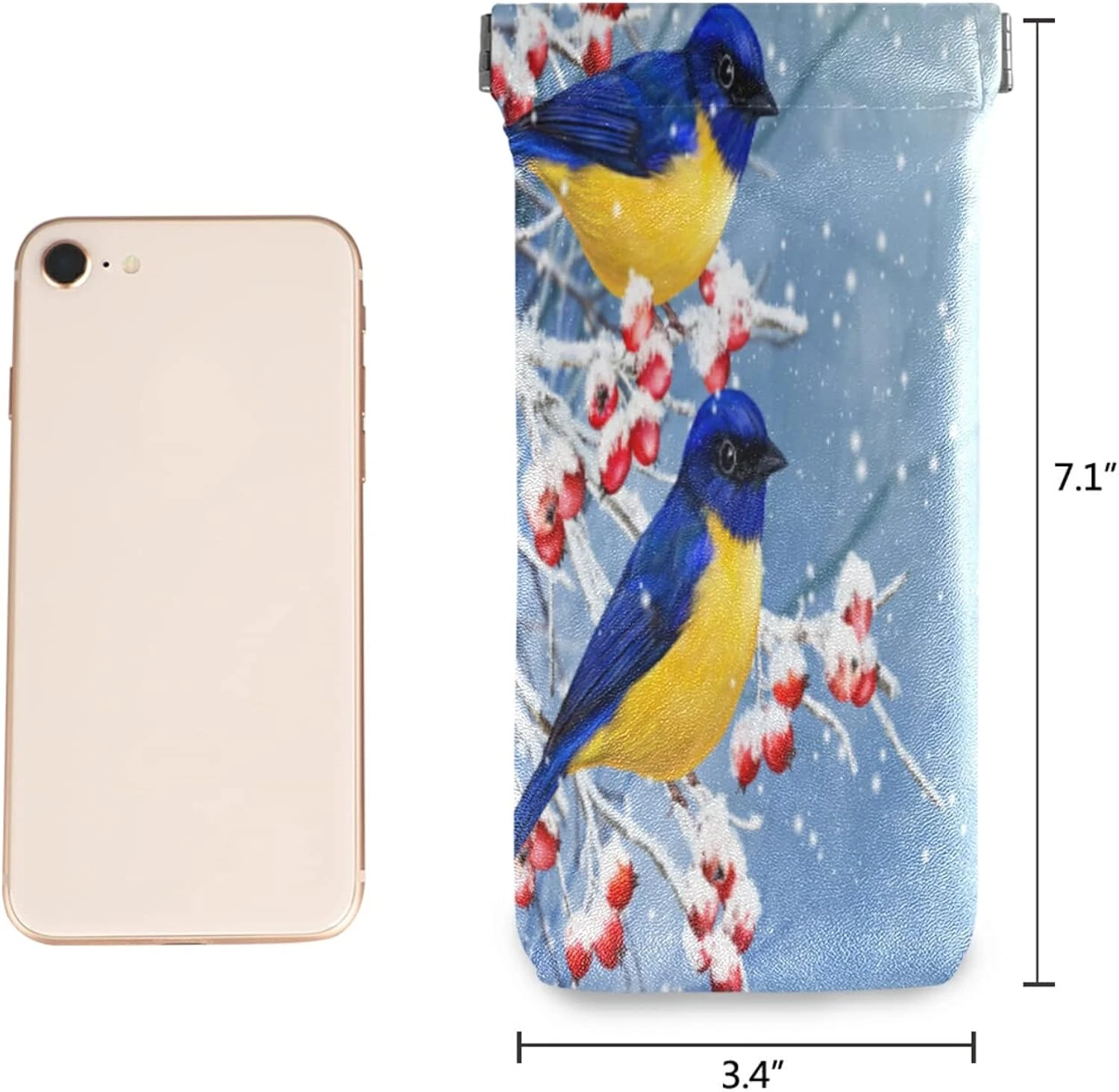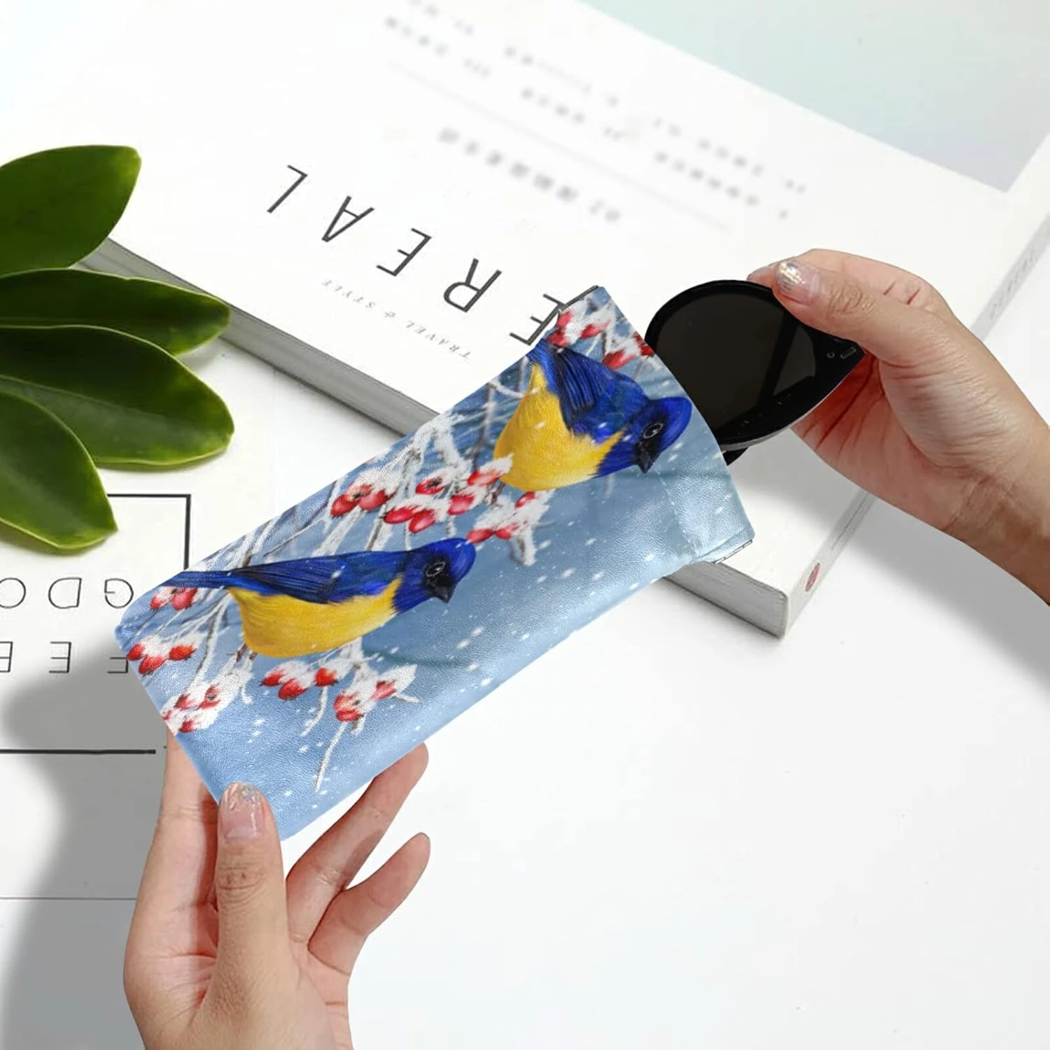 OTVEE Winter Christmas Yellow Birds Sunglasses Bag Eyeglass Case Large Soft PU Leather Glasses Pouch Storage Bag Holder Squeeze Top Portable Sunglasses Case Gadgets Sleeve Bag For Women Men Kids Girls