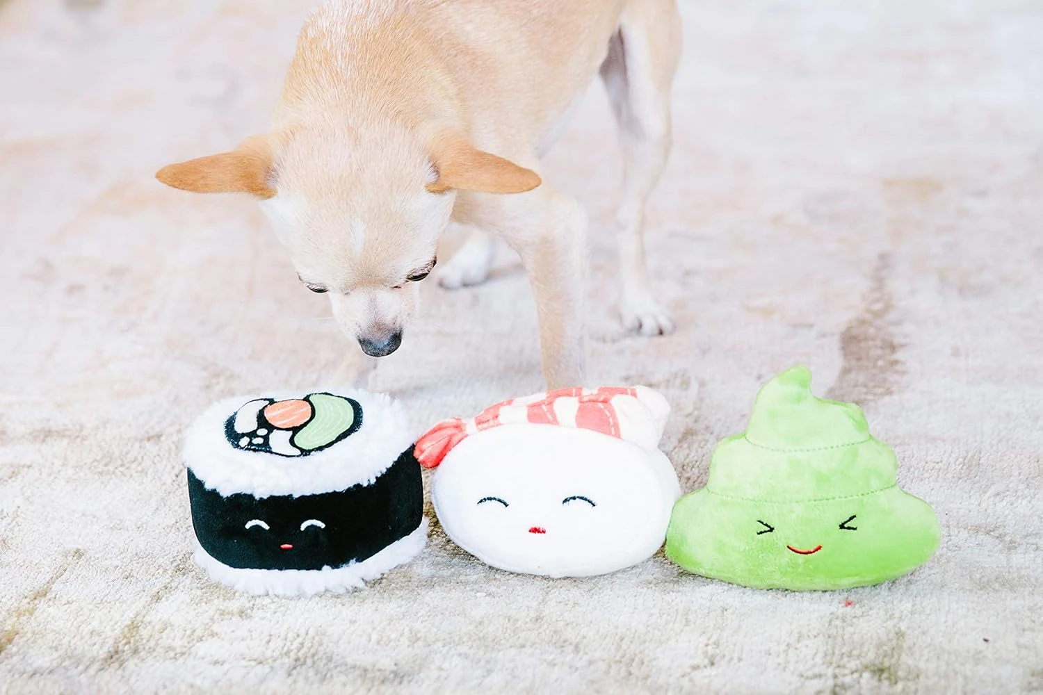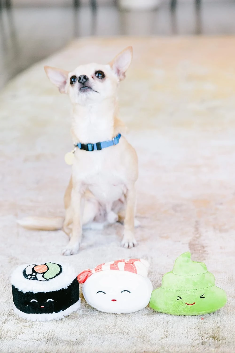 Pearhead Sushi Toys, Plush Squeaky Dog Toy Set, Pet Owner Must Have Dog Accessory, Pet Set, Holiday , Christmas Pet Stocking Stuffer, Set Of 3