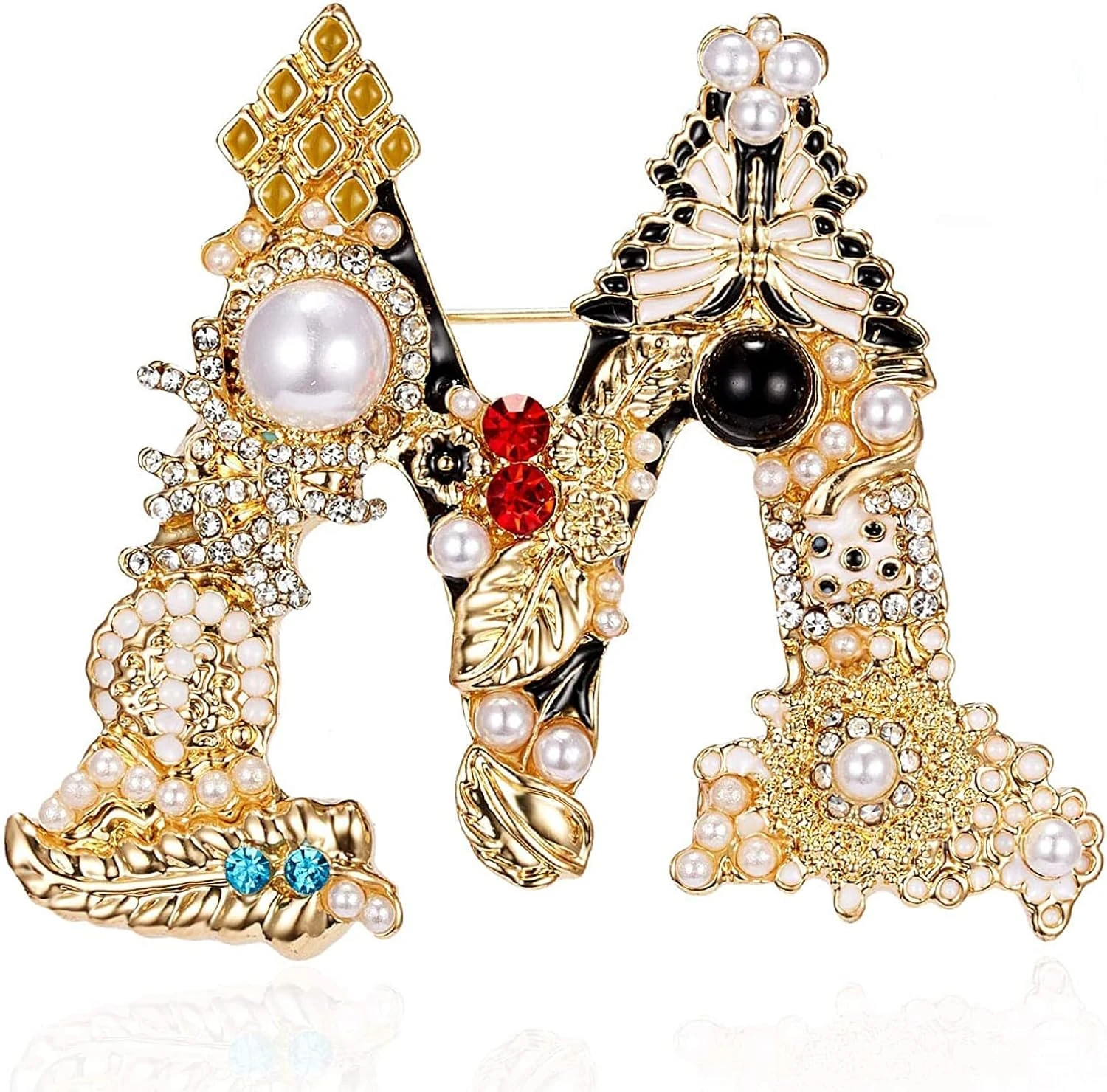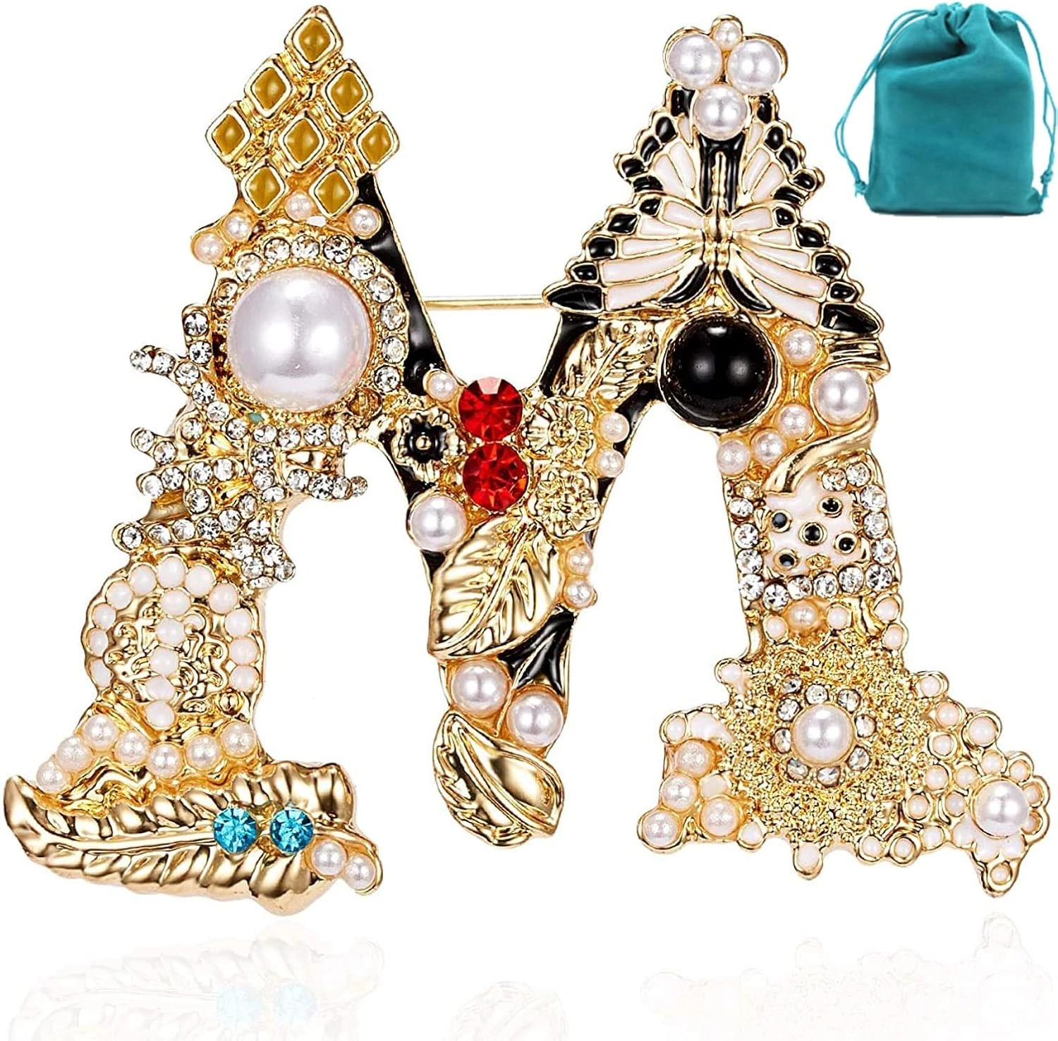 - ★★★【LETTER BROOCH MATERIAL】 Gold Plated Letter M Brooch Pins made of alloy and point drill with select rhinestones crystal and pearl, elegant sophisticated design and fine finish give you excellent experience, durable and never change color