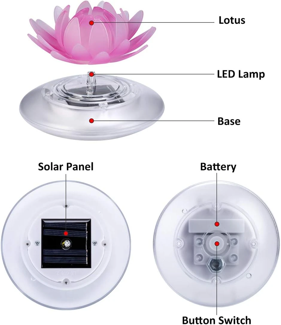 - 【INNOVATIVE TOP DESIGN】 — Lotus top patterns are beautiful and perfect for pool and pond decoration. Lovely and beautiful floating lights will increase the vitality for your pool and pond.