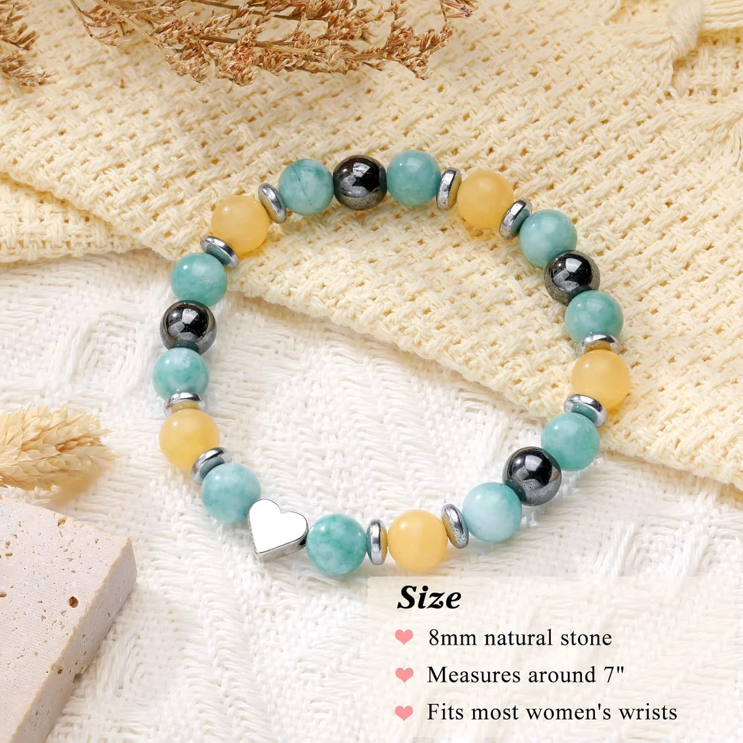 - 【Size】Made of high-quality elastic cord, so the bracelet can stretch to fit most women’s wrists and does not break easily. The bracelet measures around 7 inches, each round stone measures 8mm.