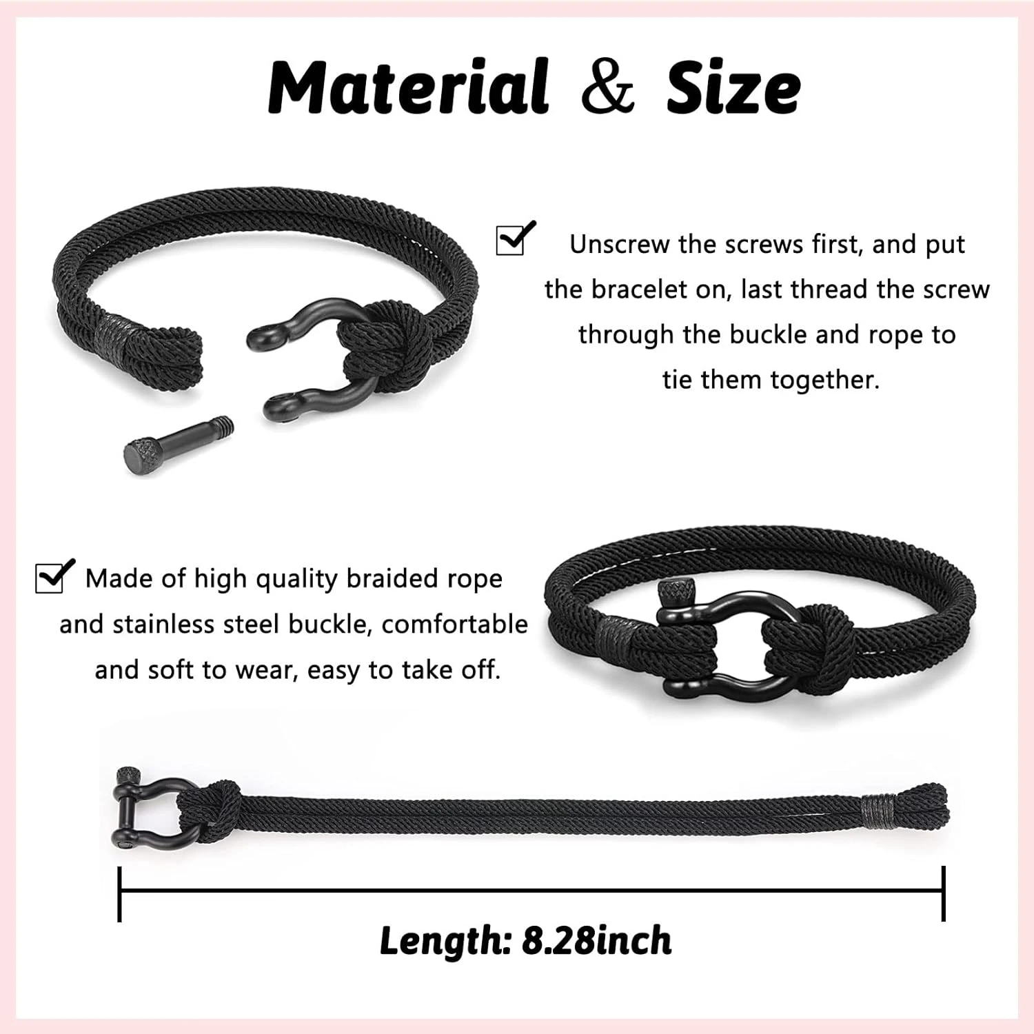 - [High-Quality Material] – This bracelet is made of high quality braided rope and stainless steel buckle, comfortable and soft to wear, easy to take off.