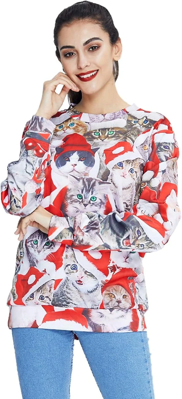 RAISEVERN Unisex Christmas Sweatshirt For Men Women Pullover Sweater Crewneck Long Sleeve Top