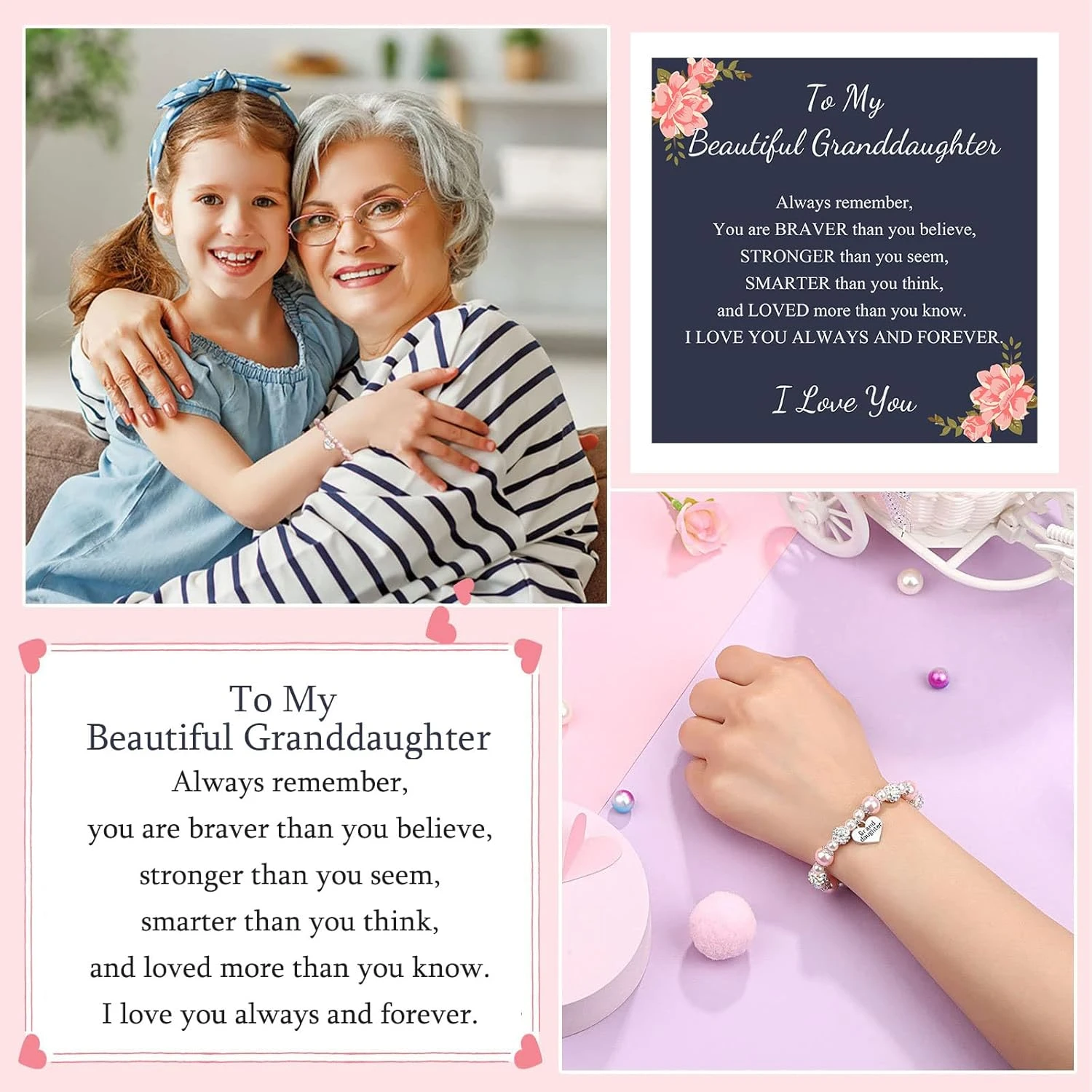 - Granddaughter Gifts from Grandma : The sparkly & lovely pearl bracelet comes with A card with a blessing that expresses the Grandma’s love for her Granddaughter.