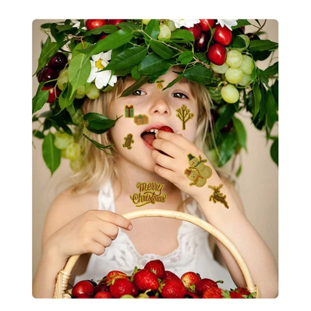 Stampcolour Christmas Realistic Printable Temporary Metallic Tattoo Paper For INKJET Printer, 8.5”X11” 5 Sheets DIY Personalized Gold Tattoos Sticker Skin Custom Cartoon Kids Summer Party Themed