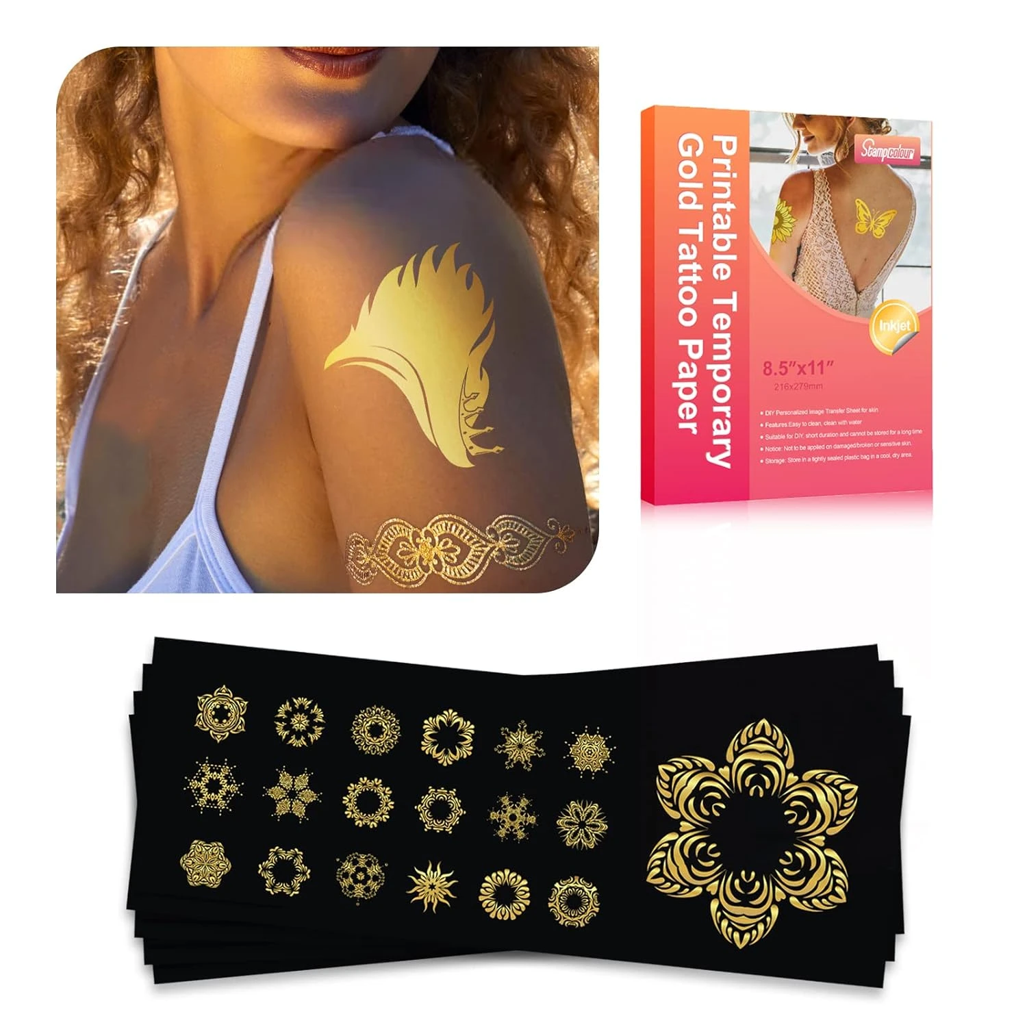 Shop Stampcolour Christmas Realistic Printable Temporary Metallic Tattoo Paper for INKJET printer, 8.5”X11” 5 Sheets DIY Personalized Gold Tattoos Sticker Skin Custom Cartoon kids Summer Party Themed online at a best price in UK. Get special offers, deals, discounts & fast delivery options on international shipping with every purchase on Ubuy UK. B0B4S22ZQ2