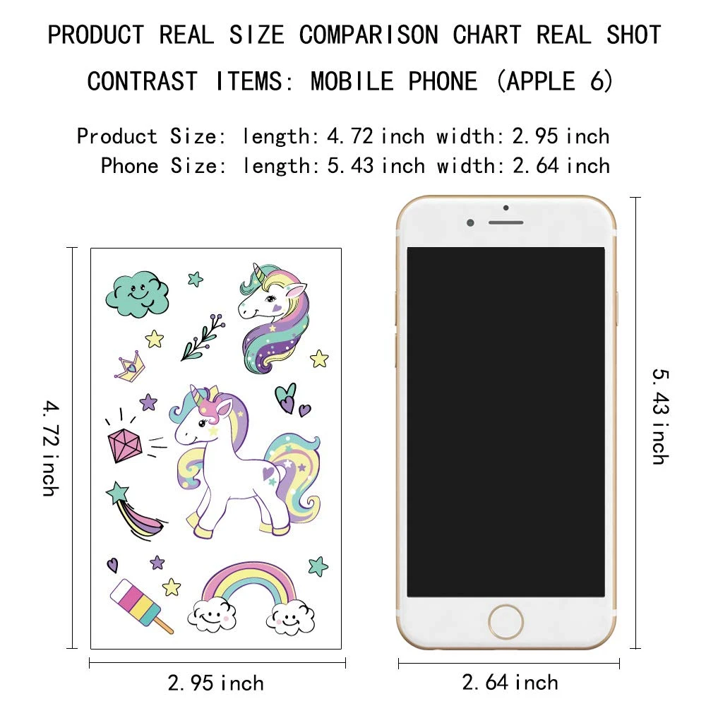 - MIX STYLE TATTOOS – Stickers designs include mermaid tail, dinosaur, unicorn, butterfly etc. Kids tattoo can apply them to some smooth objects, for example, arms, shoulders, glass, cup, stationery, plastic, phone case, car etc.