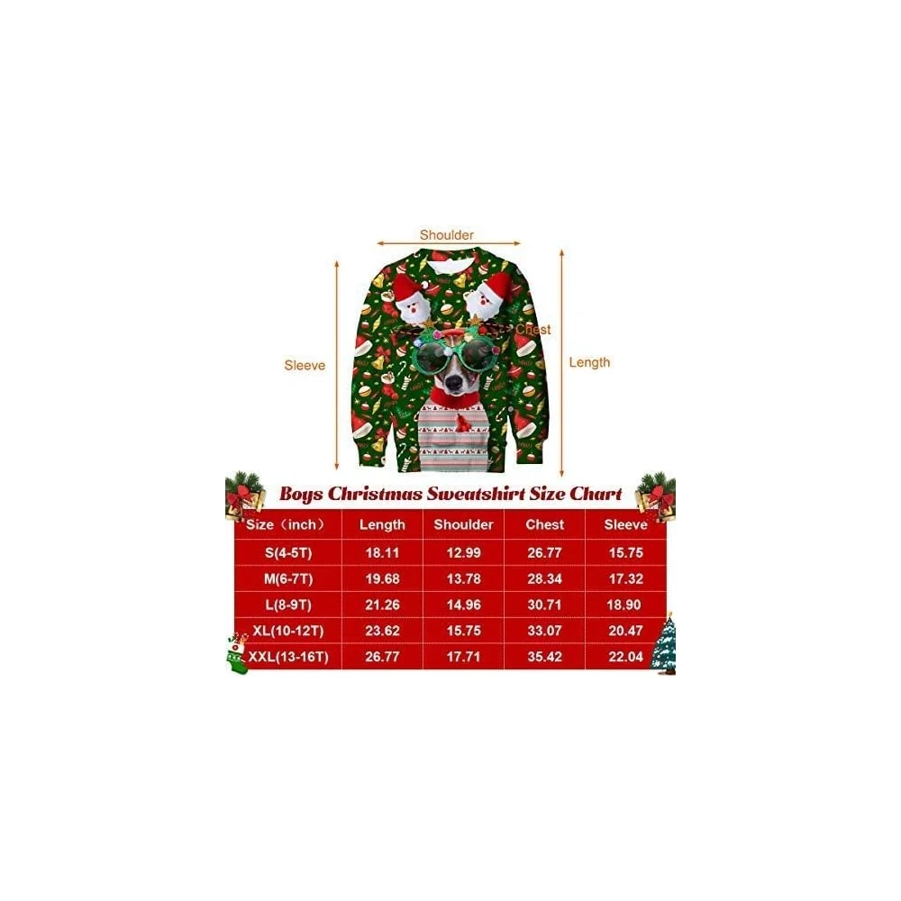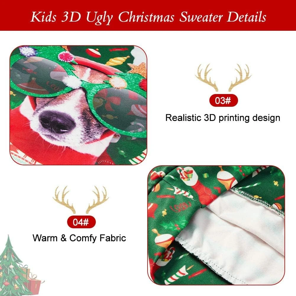 TUPOMAS Kids Ugly Christmas Sweater Boys Girls Xmas Sweatshirt Children Funny Fleece Tshirt 4-16 Years