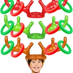 TURNMEON 3 Pack Inflatable Reindeer Antler Ring Toss Game For Christmas Holiday Thanksgiving Xmas Party Game Headband Inflatable Toys For Holiday Family School Photo Props Game(3 Antlers, 12 Rings)