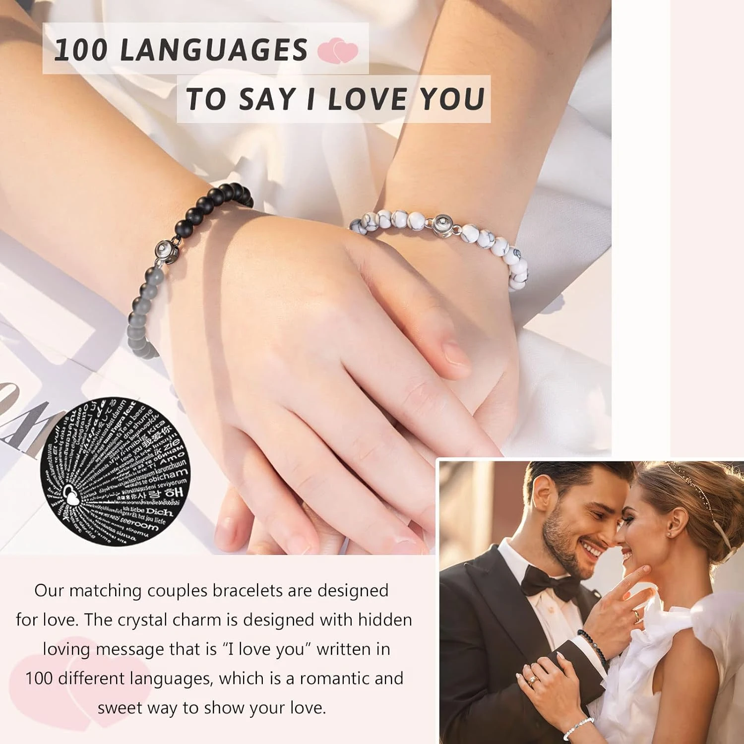 UNGENT THEM I Love You 100 Languages Bracelets Couples Gifts To My Men, Boyfriend, Girlfriend, Husband, My Love, Soulmate, Fiance – Anniversary Valentines Day Birthday Christmas Gift For Him And Her