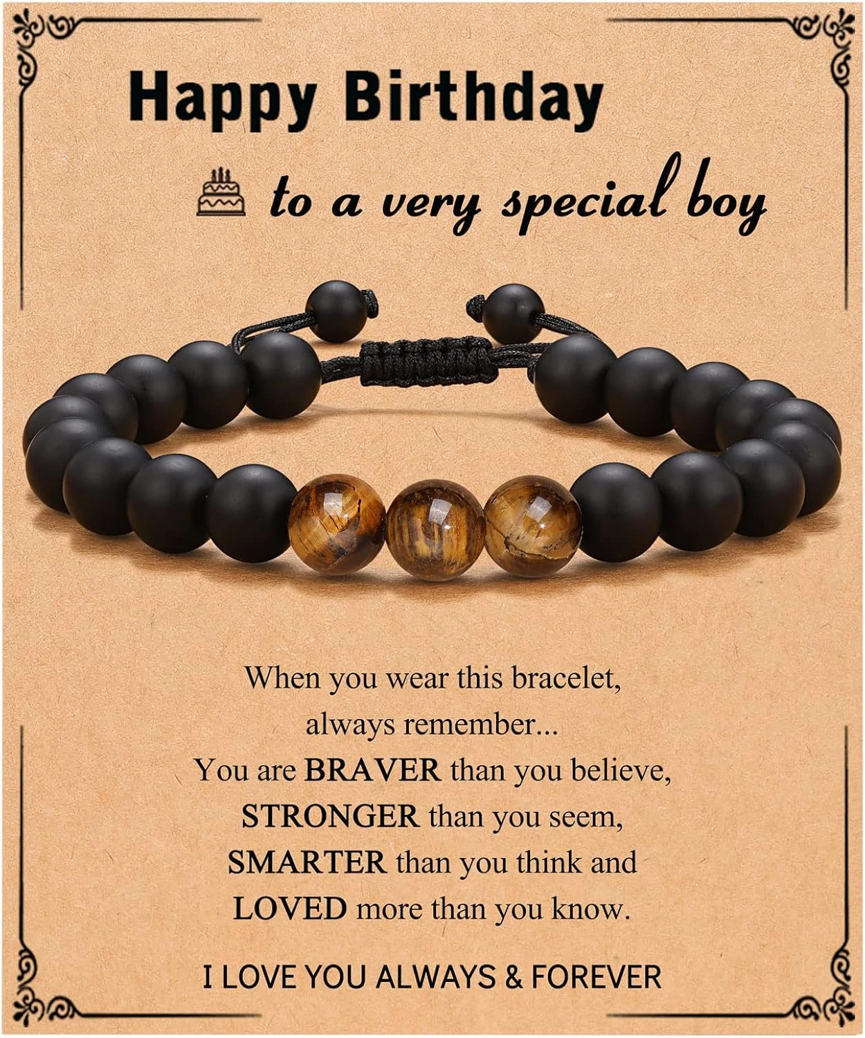 - 【Happy Birthday Gifts】–“You’re braver than you believe, stronger than you seem, smarter than you think, and Loved more than you know.” Give this cute bracelet to your boy and let him know you will love him always and forever and help him celebrate the birthday with this simple and cute gift.