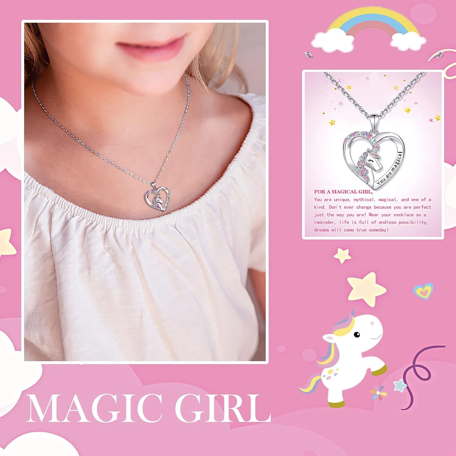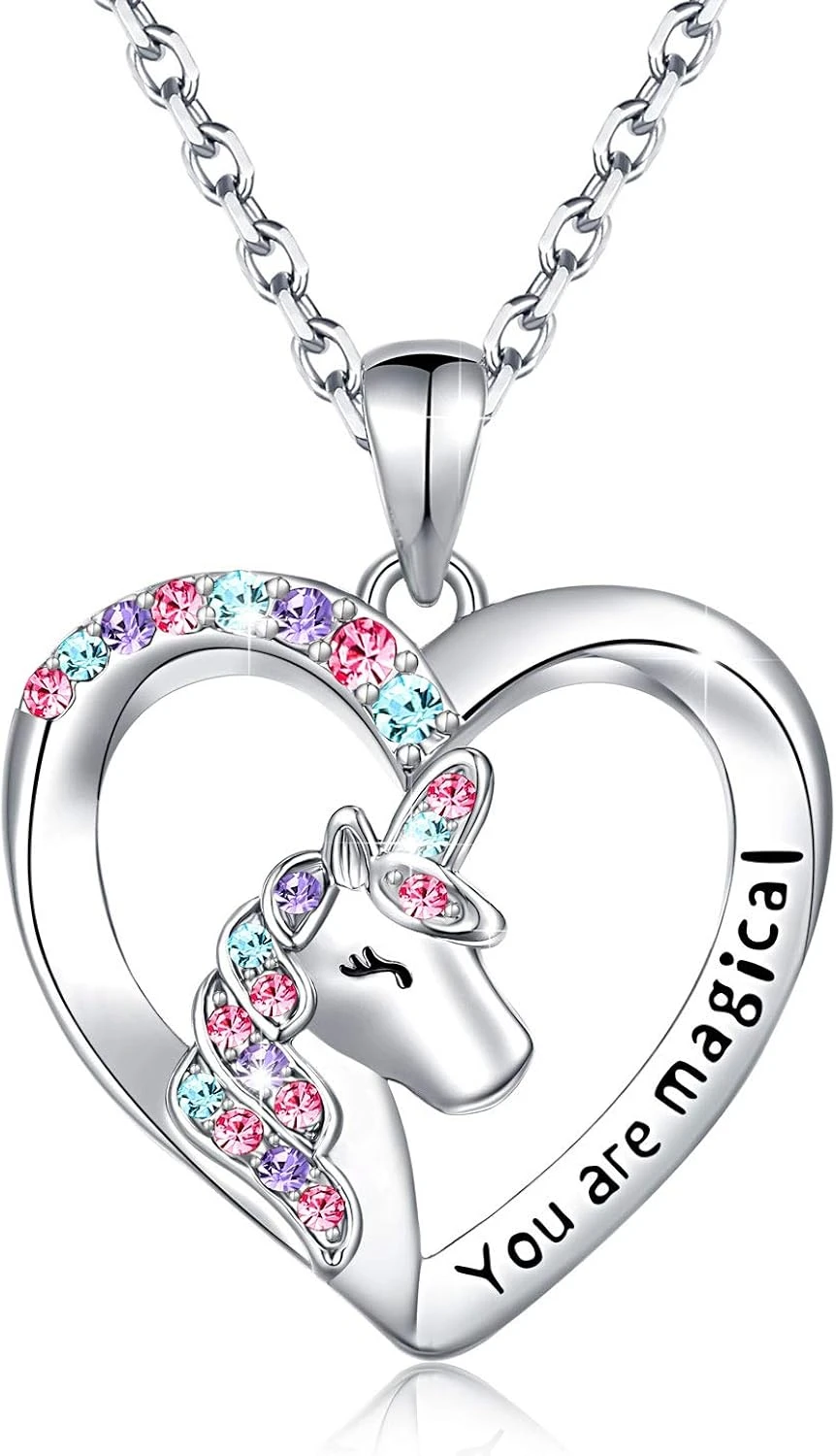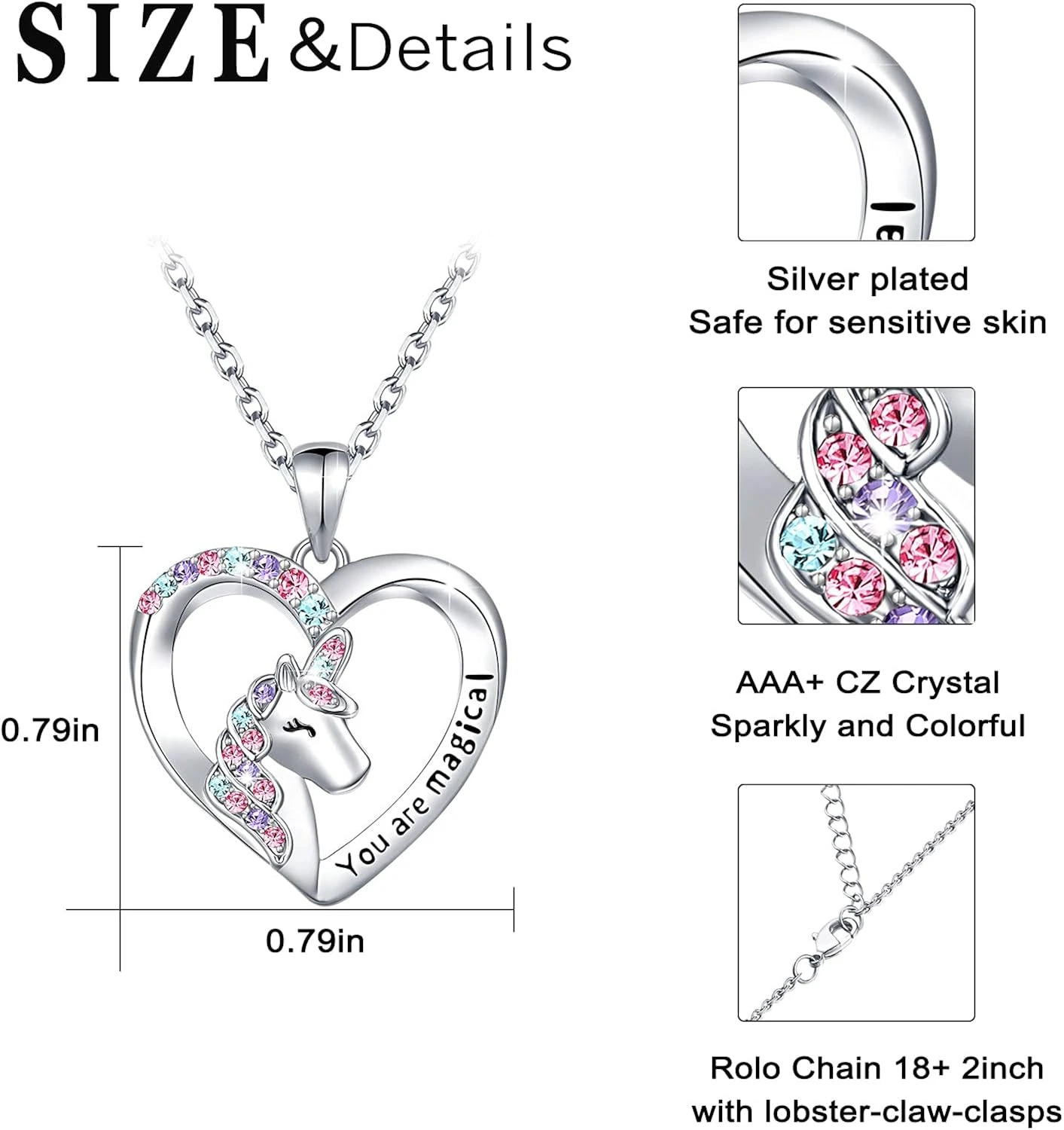 UNGENT THEM You Are Magical Unicorn Necklace For Girls Crystal Heart Pendant Necklaces Unicorn Jewelry Gifts For Girls Daughter Granddaughter Niece Birthday Christmas