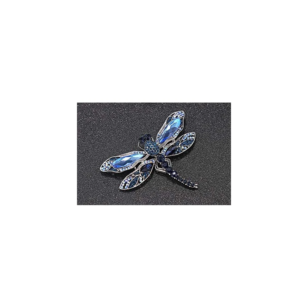- 🎈UNIQUE DESIGN:navy blue rhinestone and crystal makes the brooch looks elegant .large dragonfly insect shape make your clothes personnality.