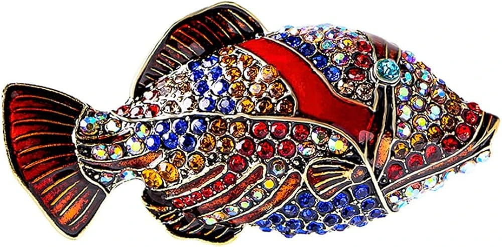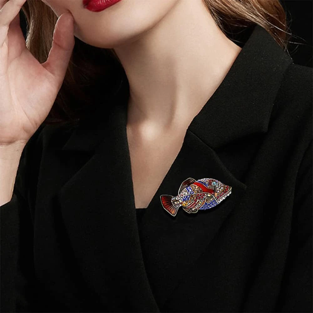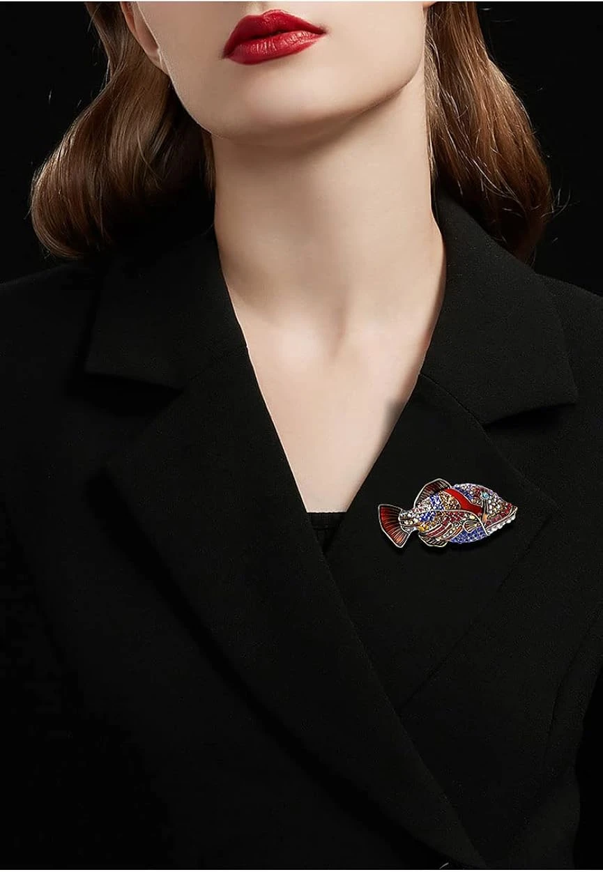- ♥SIZE & STYLE♥The Fish Rhinestones Brooch Pin Height: 35mm(1.37in), Brooch Pin Width:68mm(2.67in). Please kindly refer to the product image.