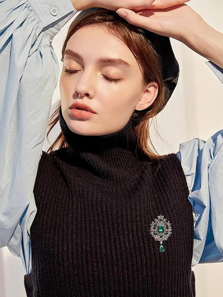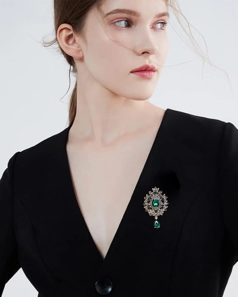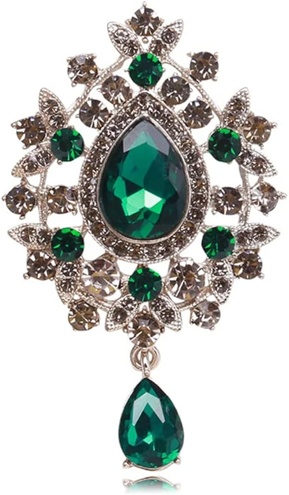 Vintage Teardrop Emerald Green Rhinestones Flower Brooches Pins Delicate Sparkly Crystal Flowers Tassel Dangle Drop Brooch Classic For Wedding Party Dance Banquet For Women Ladies Dainty Elegant Beautiful Lapel Pins Dress Suit Shirt Ceremony Clothes Accessories Daily Jewelry Mother’s Day Valentine’s Day Decor Christmas Birthday Gifts Her Mom Wife