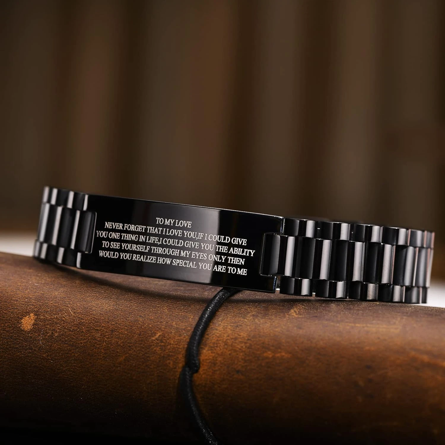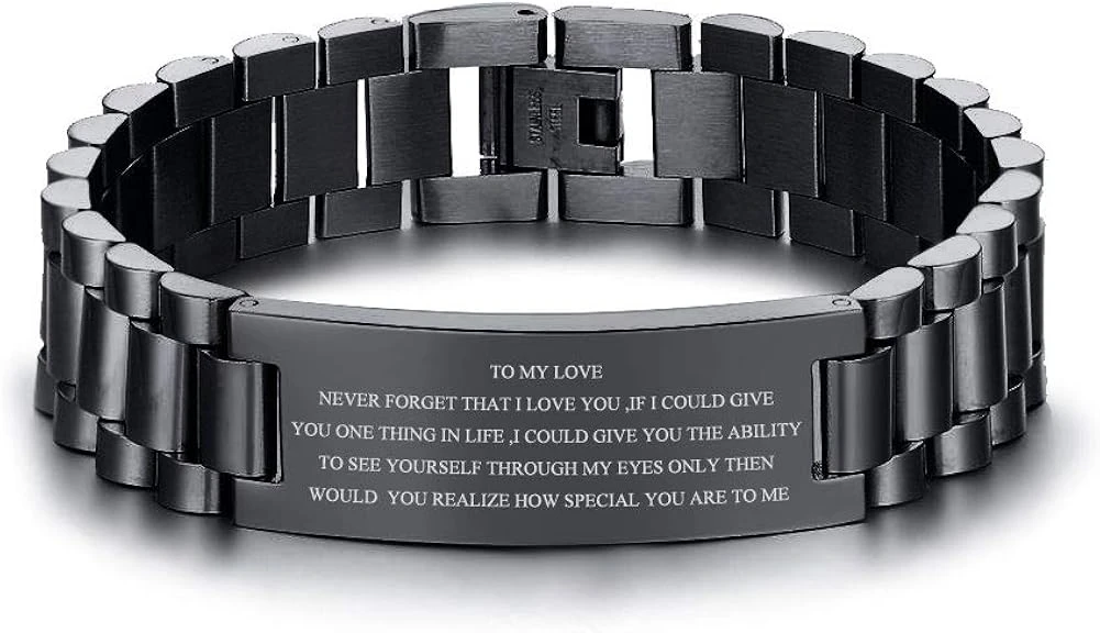 VNOX Engrave Love Quote Link Bracelet For Men Husband/Boyfriend/Son/Lover/Brother/Teen Valentines Day Christmas Birthday Gifts For Him,Personalized Gifts
