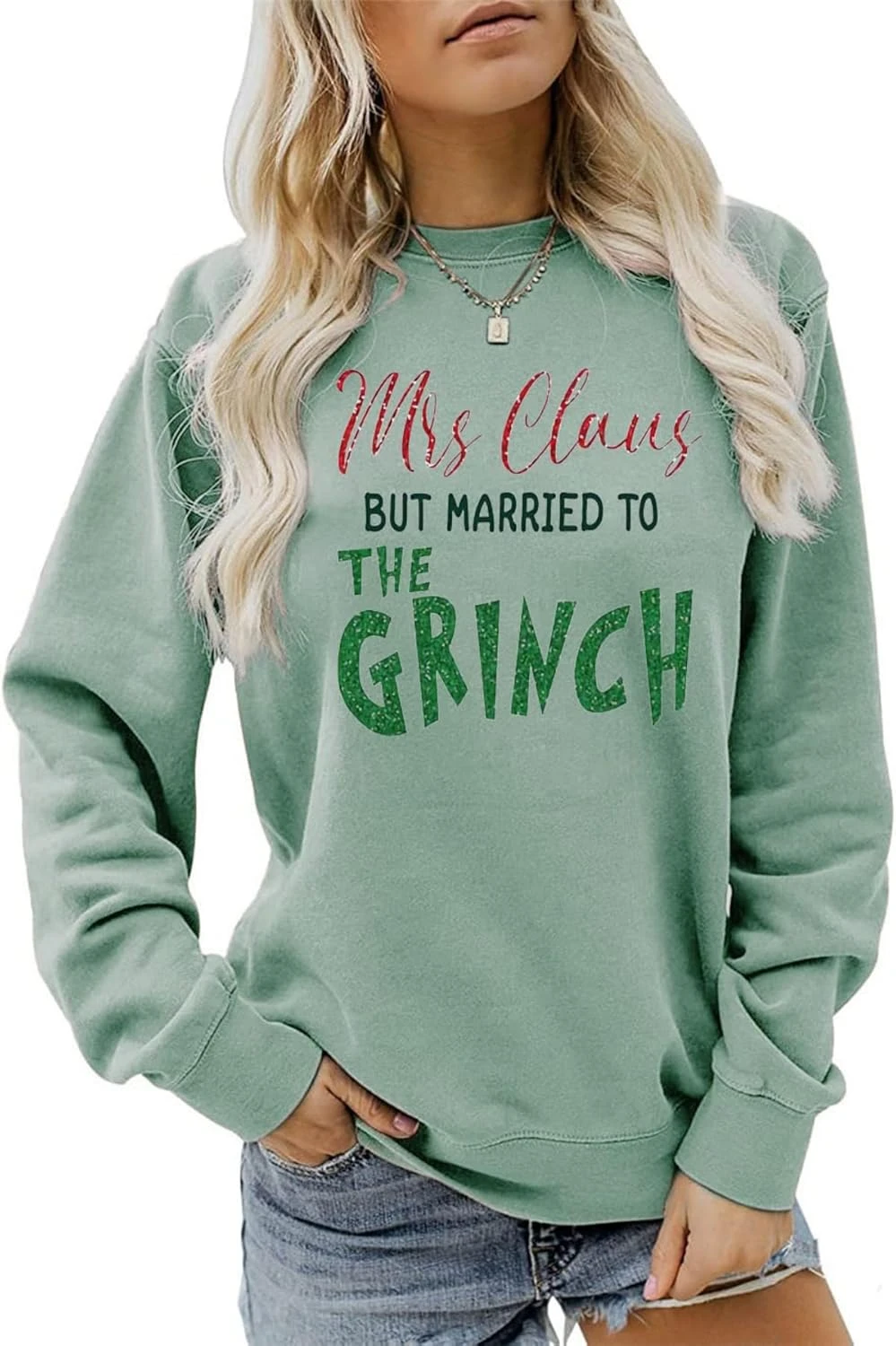 YourTees Christmas Shirts For Women Mrs. Claus But Married To The Grinch Sweatshirt