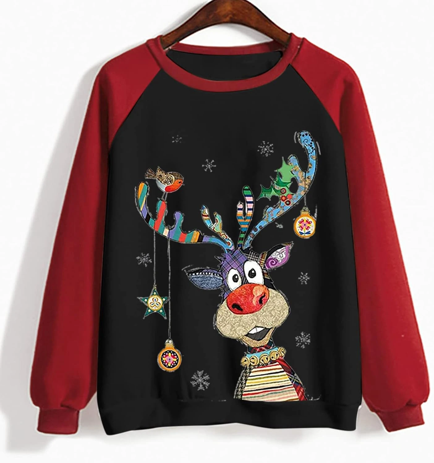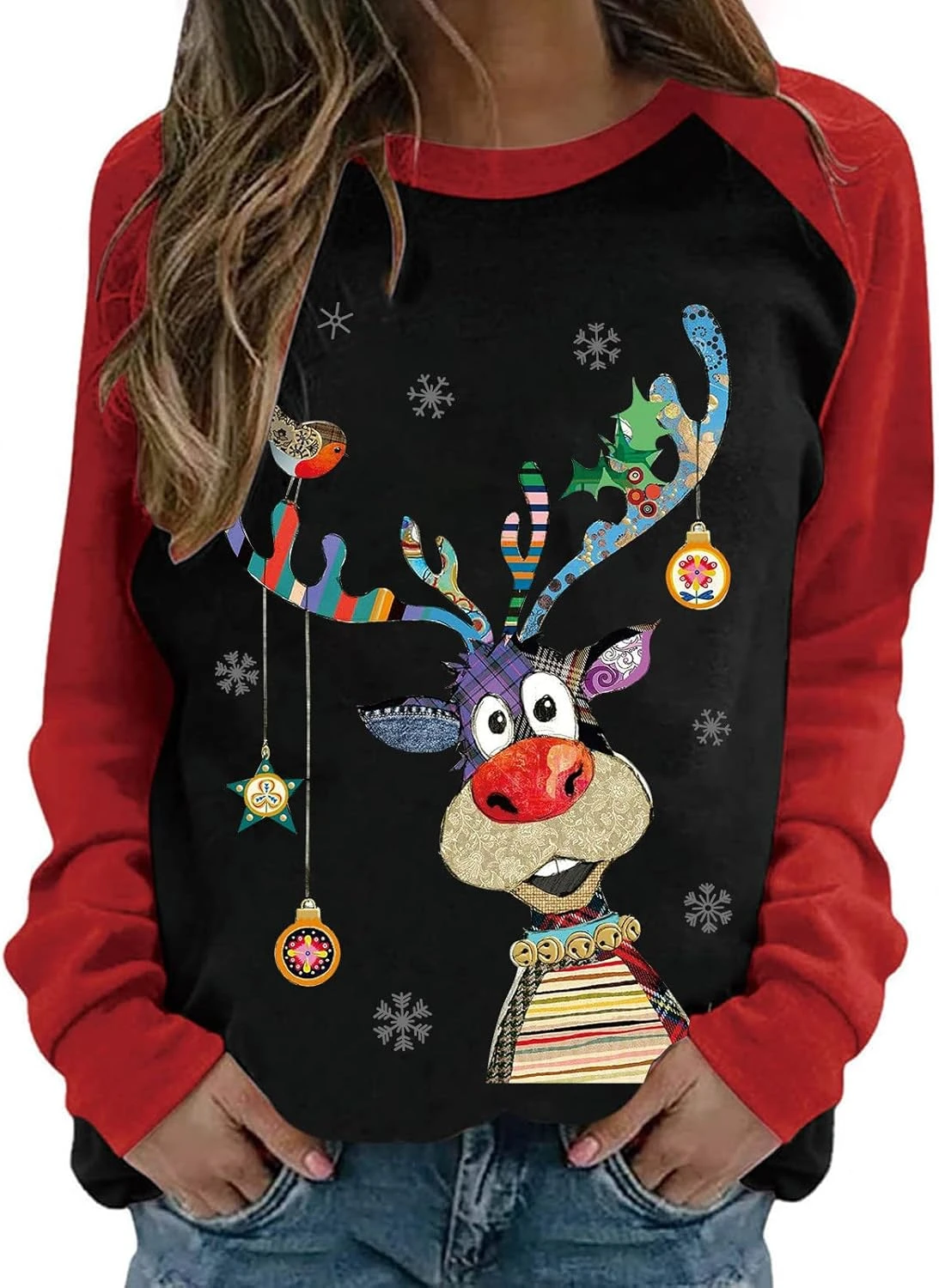 Zkuisw Ugly Christmas Sweater For Women Funny Cute Reindeer Print Long Sleeve Shirts Fall Novelty Xmas Crewneck Sweatshirts
